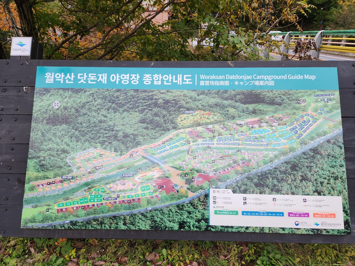 다만... 이 캠핑장은 시작 전 이 이름에 대해 좀 설명이 필요합니다. 이 캠핑장은 여기서는 닷돈재 야영장(캠핑장)으로 부르지만 저 사진처럼 '닷돈재4색야영장'이라 칭하는 경우가 있습니다. 그리고 국립공원공단에서는 다시 이 캠핑장을 닷돈재 1야영장과 2야영장으로 구분하는데... 사실 이 캠핑장은 그냥 하나로 봐야 하고 그냥 닷돈재 야영장'으로 부르면 알아 듣습니다. 4색야영장은 일종의 별명에 가깝죠. 이 부분은 뒤에 좀 더 구체적으로 설명하고...