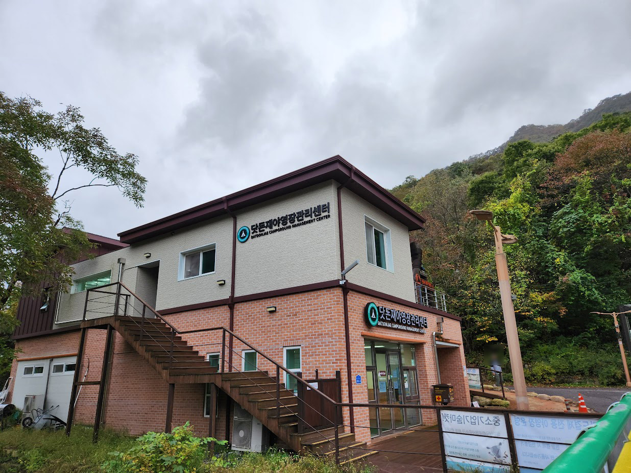 일단 저 다리를 지나면 관리동이 나옵니다. 여기에서 체크인을 해야 합니다. 쓰레기봉투도 여기서 살 수 있습니다. 추가로 샤워장도 겸하고 있습니다. 화장실은... 여기 없습니다.T_T