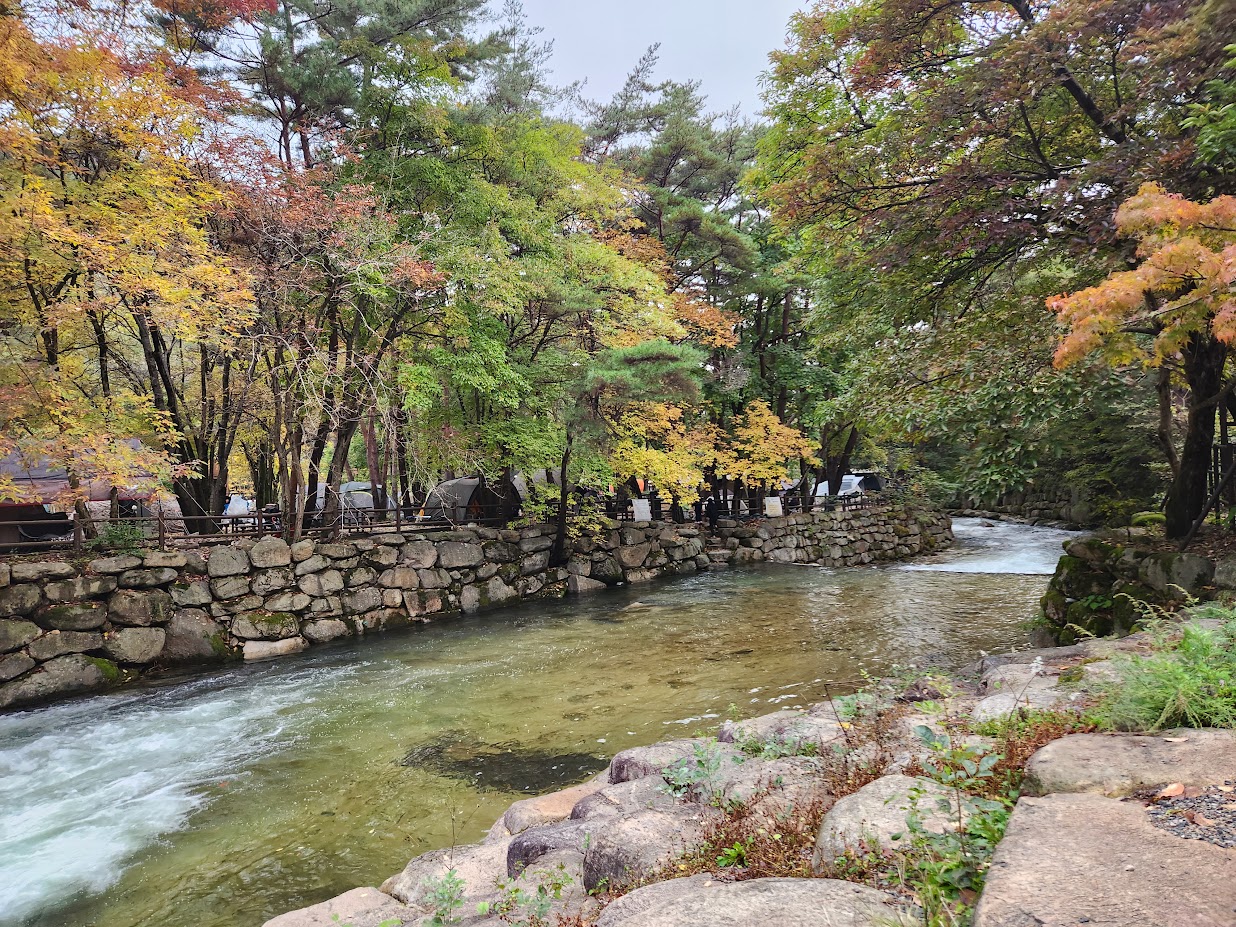 여기도 냇가에 접한 곳에서는 물소리를 제대로 들을 수 있습니다. 다만 일부 물가의 영지가 예비영지라서 운영을 안 하는 만큼 이건 참고가 필요합니다.
