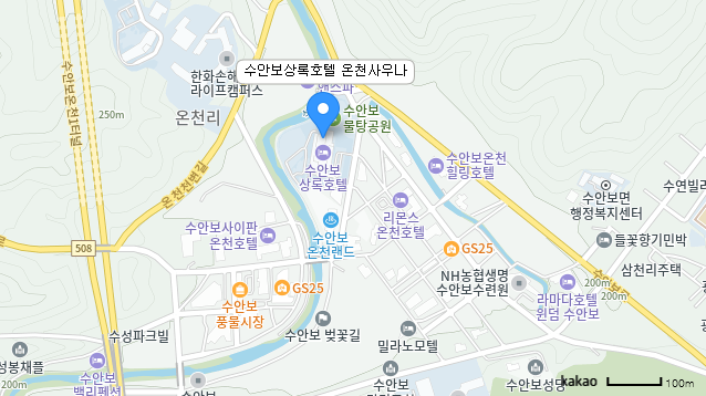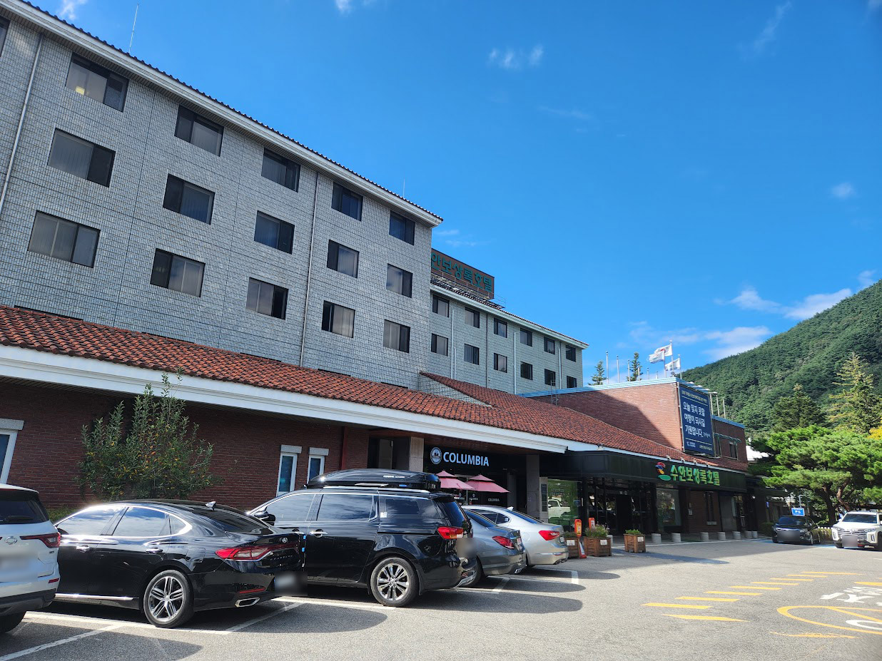 하지만 수안보온천랜드가 역사적으로는 수안보의 간판이지만 현재 규모면에서 수안보의 플래그쉽은 아닙니다. 연수원 등 전용 시설을 제외한 일반 시설에서 수안보를 대표하는 곳은 따로 있습니다. 사실 저 수안보온천랜드에서 그냥 옆의 옆 건물입니다. 어디인가 하면...