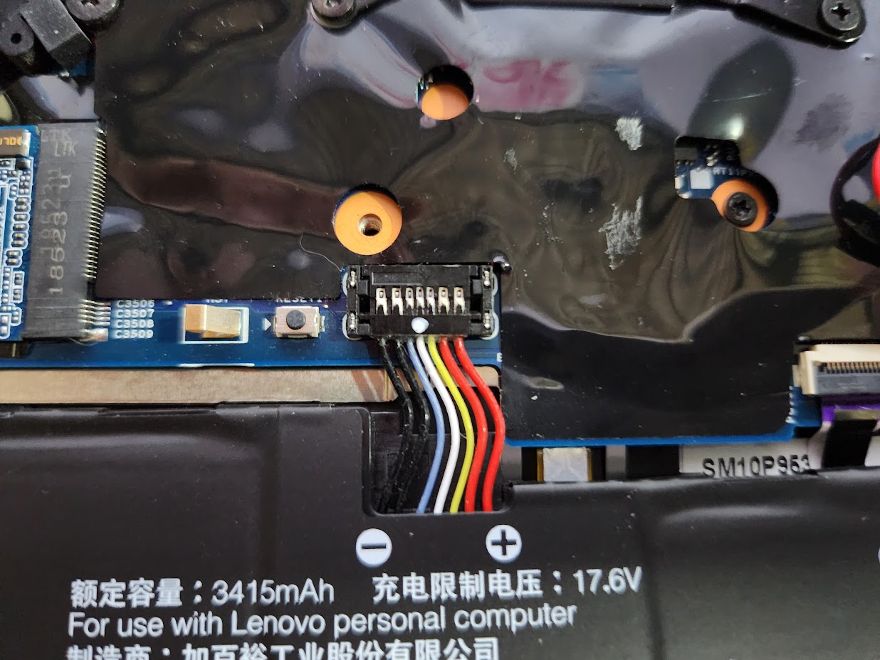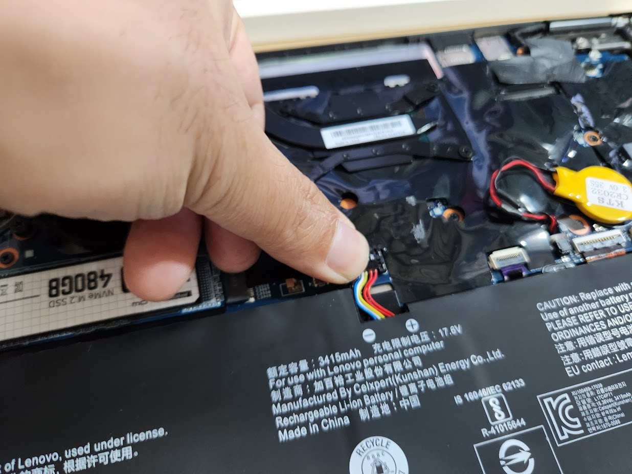 다만 이 부분이 어렵습니다. 배터리를 메인보드와 연결하는 커넥터인데 이게 사진을 보시면 아시겠지만 아래로 락이 걸려 있습니다. 원래는 아래에서 위 방향으로 밀어 올려 락을 풀어야 하겠지만, 그냥 단자 윗부분에 손톱을 넣어 위로 들어 올려 떼내는 것도 가능은 합니다. 하여간 이 부분이 나름 핵심입니다.