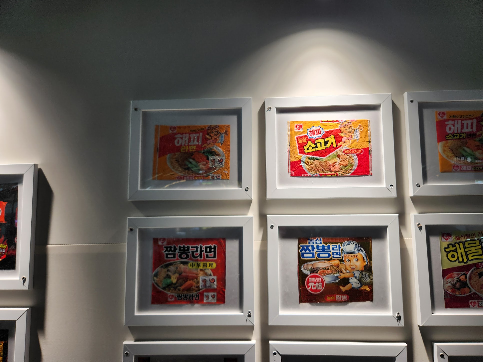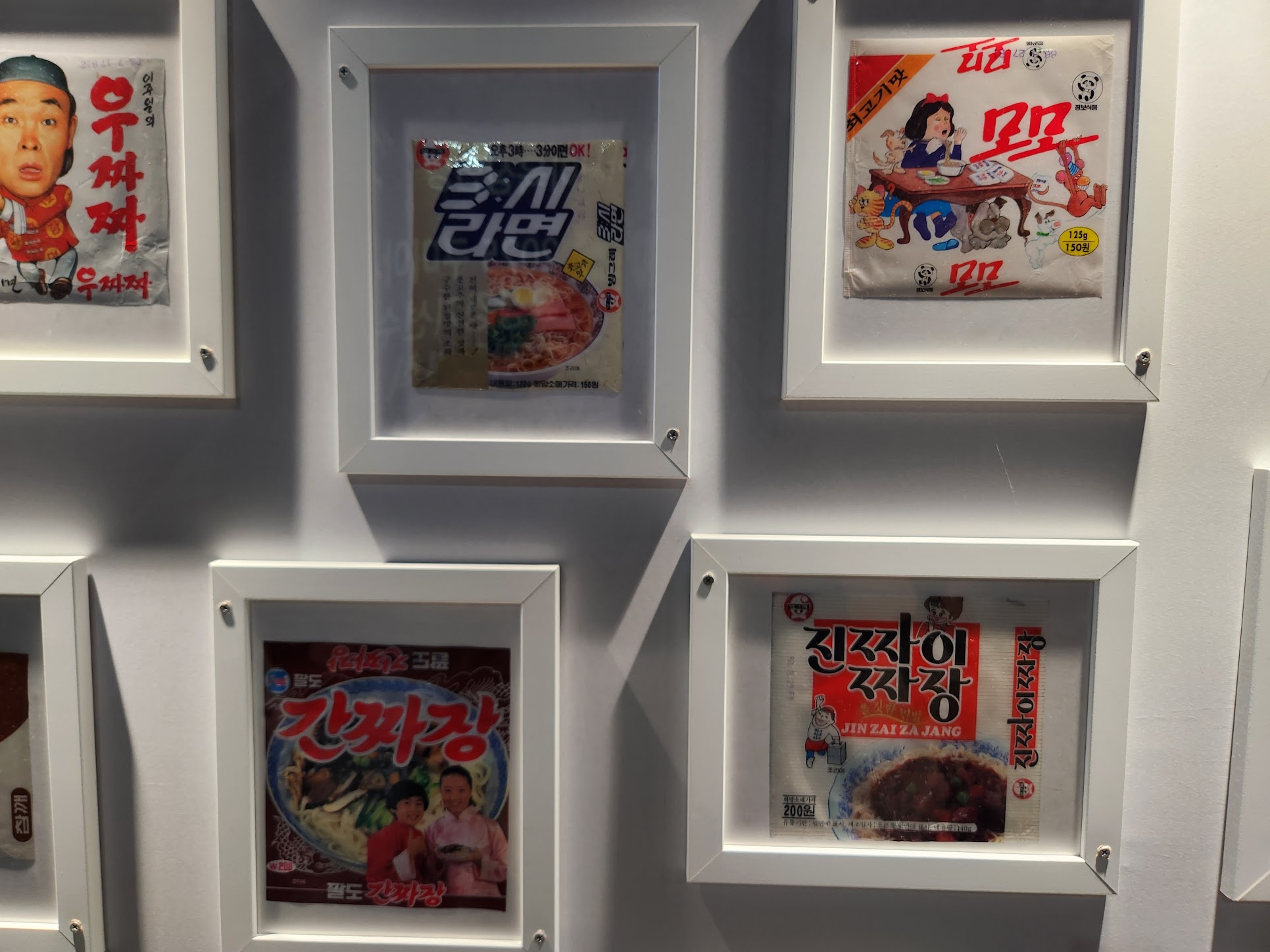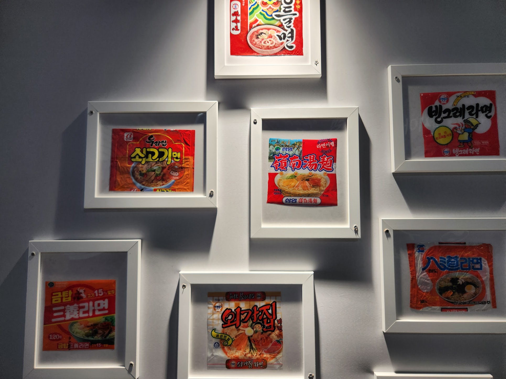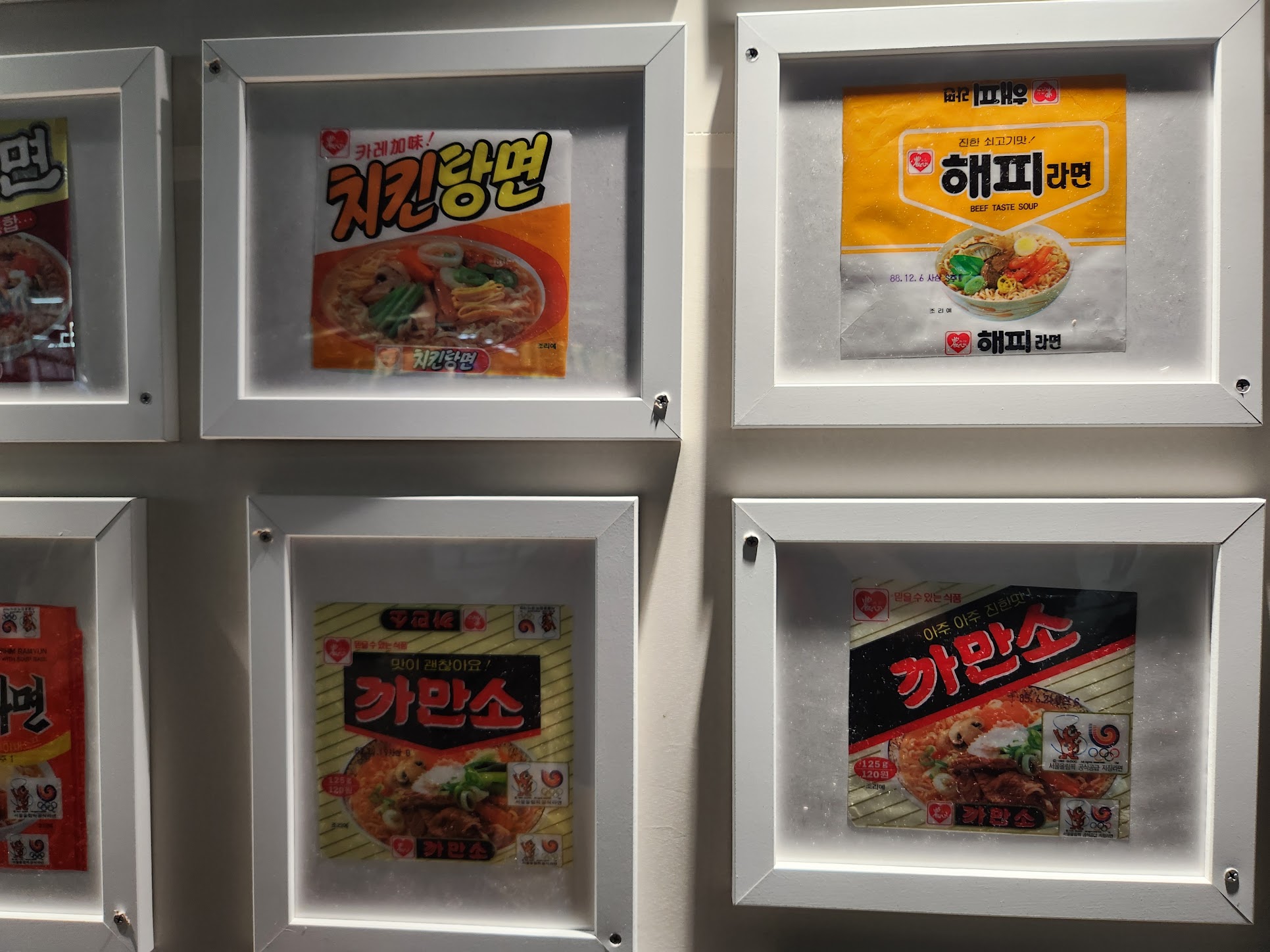 그러면... 본격적으로 라면축제장에 가 봅니다. 먼저 구미역에 내리면 라면 봉지들이 전시되어 있습니다. 정말 최초의 삼양라면 봉지까지는 아니더라도 그런대로 라면 봉지들이 있는데, 앞면에는 농심것만, 뒷면에는 다른 회사 라면 봉지가 전시되어 있습니다.