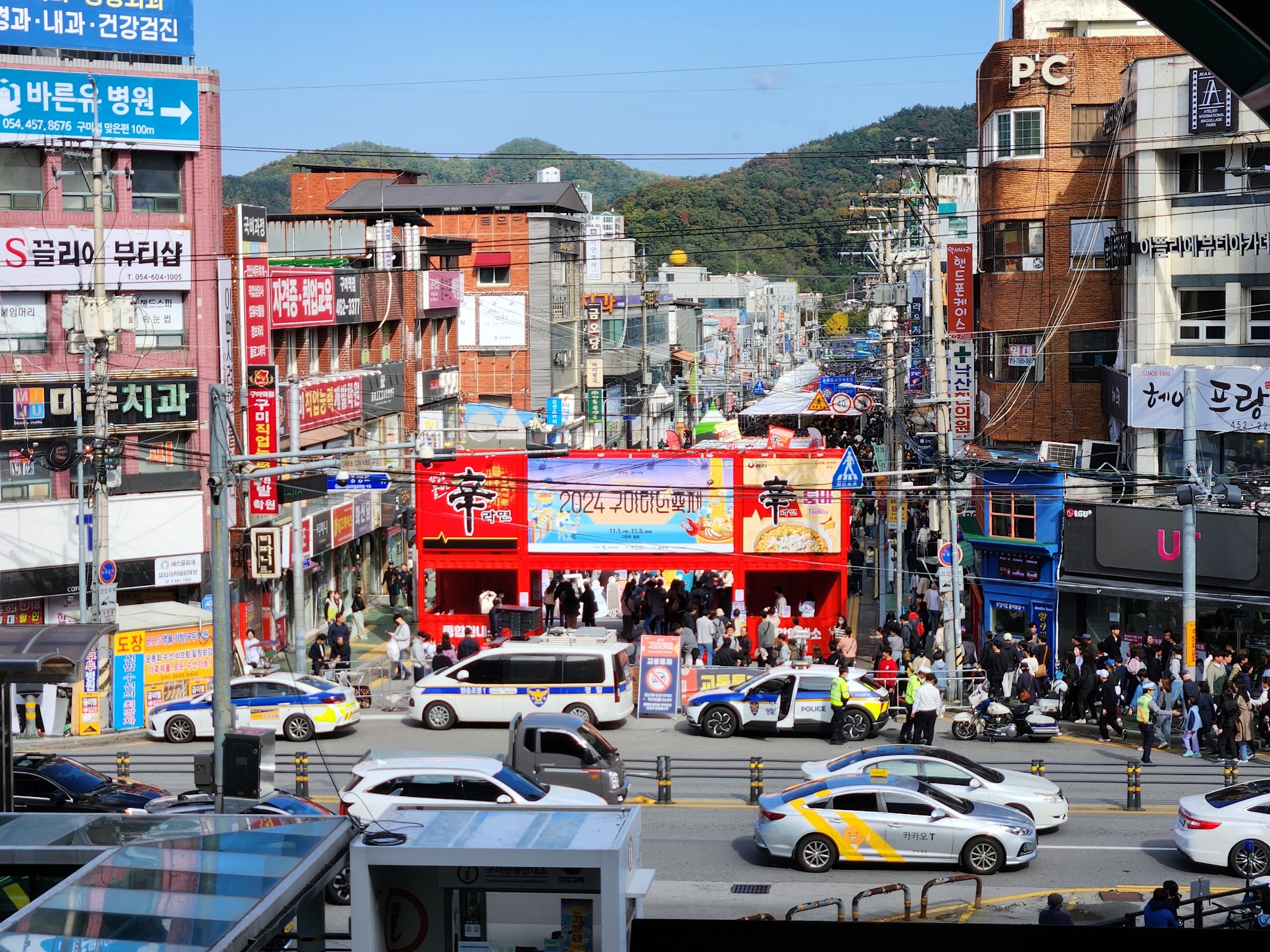 이 축제도 올해 3번째인데, 공단밖에 없는 구미라는 동네와 라면이 무슨 관계냐 하시면... 사실 이유가 딱 하나밖에 없습니다. 농심 라면 공장 가운데 하나가 구미에 있습니다. 안성탕면 효과로 보통 안성이 라면의 도시 아니냐 하시겠지만 농심 안성공장은 스프 전문 공장이라 완제품 공장은 아닙니다. 하여간 이러한 이유로 정말 공단밖에 없는 도시 구미에서 라면 축제를 열게 되었는데, 농심이 스폰서라 그냥 농심으로 시작해서 농심으로 끝나는 축제입니다. 사실 라면축제라는 이름에 대해 좀 문제가 있는게 이 부분이지만, 이건 뒤에서 적기로 하고... 올해 라면 축제는 지난 주말 3일간 열렸습니다. 구미역 앞 도로를 막고 행사장으로 삼았죠.