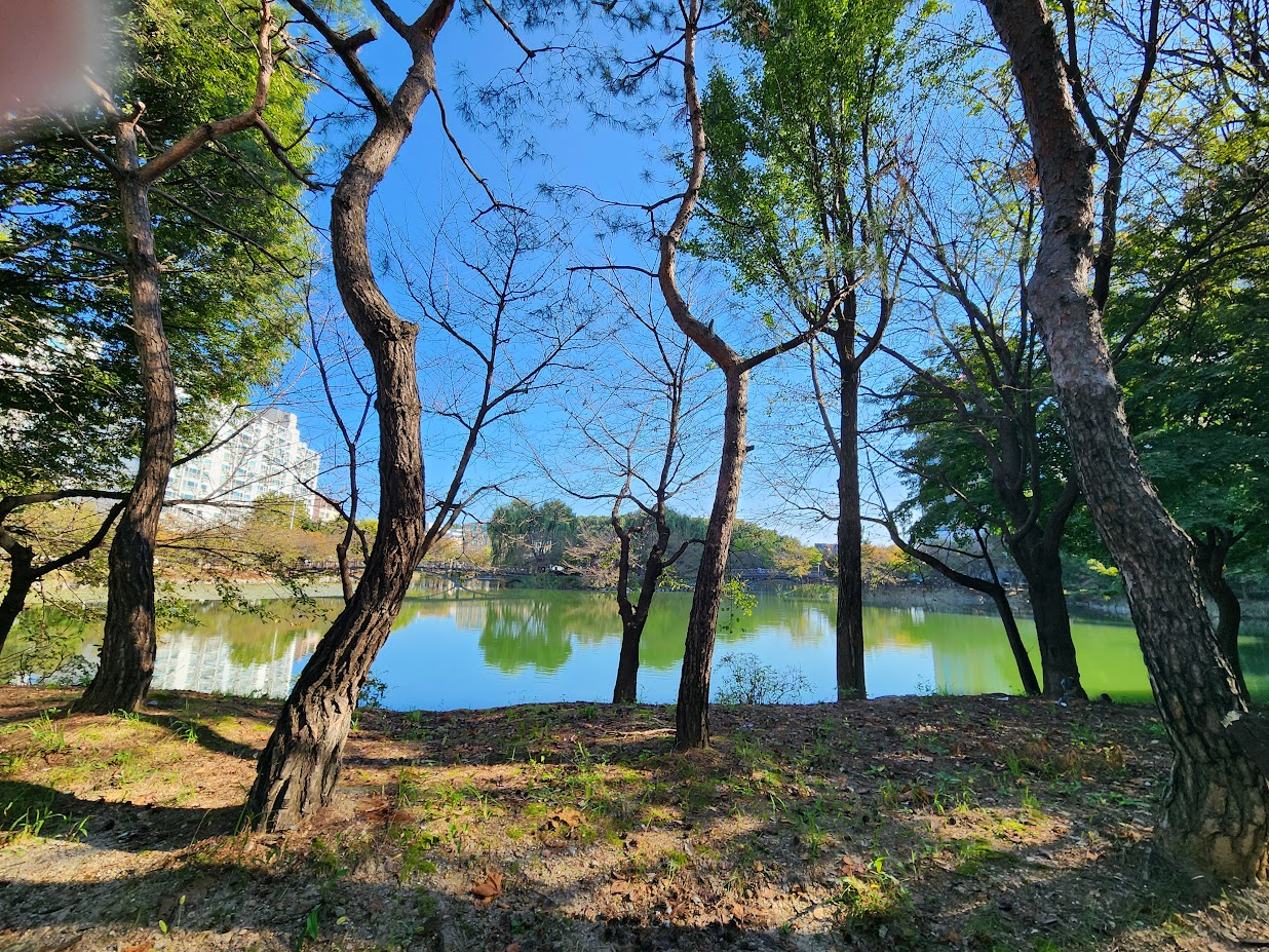 이 부분을 확인하셨다면 온천 앞에 있는 연못, 안흥지를 끼고 천천히 걸어 보세요. 다만 아직 물이 녹색입니다.T_T