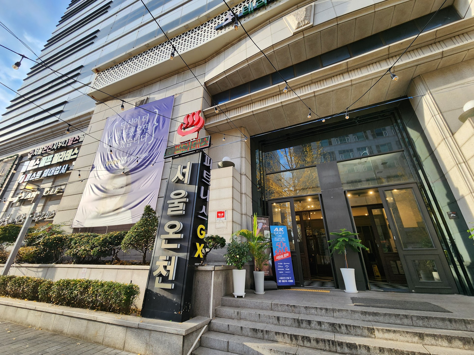 봉일온천도 시장, 정확히는 상가라 할 수 있는 곳에 위치하지만 서울온천 역시 도대체 여기 온천 맞나 하는 입지에 있습니다. 예. 그냥 번듯한 아파트 단지 가운데의 건물입니다. 위층에는 예식장도 있고 부페도 있으며 옆에는 교회도 있죠. 지하에는 수영장도 있구요. 그래서 입구 앞의 이 간판을 안 보면 도대체 온천이 있나 할 정도입니다.