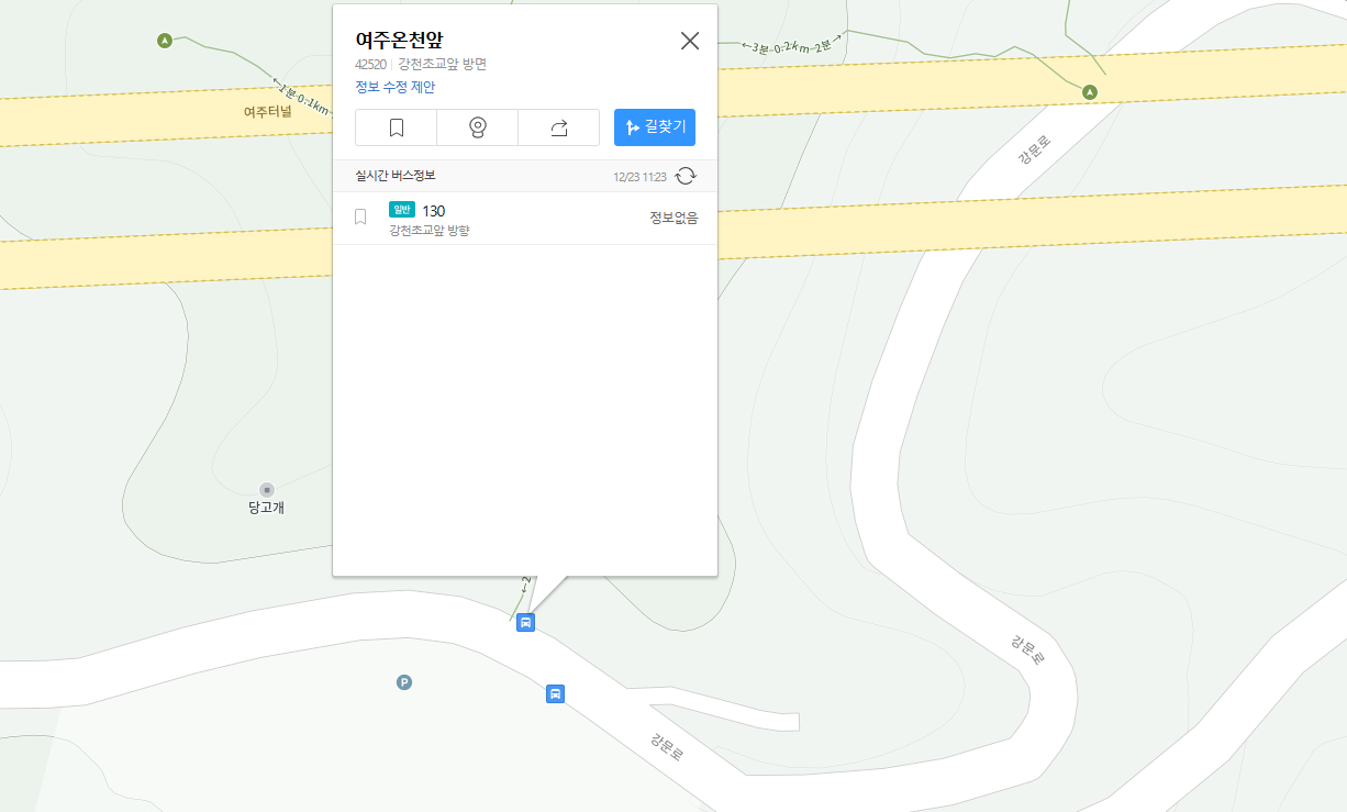 이 온천 앞으로는 여주 버스 130이라는 시내버스가 옵니다. 문제는... 이 버스 하루에 고작 5번 옵니다. 아침에 두 번, 낮에 두 번, 저녁 되기 전에 한 번이 끝입니다. 여주역과 여주터미널을 거쳐서 뱅뱅돌아 대충 중간 정도가 이 여주온천이 되는데, 일단 어떻게든 버스를 타고 온다면 반대편에서 버스가 올 때 까지 대충 1시간 좀 넘는 시간이 있기에 바로 그 버스가 종점에서 돌아서 여주로 오는 것을 탈 수 있기는 합니다. 즉 철저한 계산을 한다면 버스로 못 오는 온천은 아닌 것입니다. 반대로 말하면 그러한 철저한 계산이 없다면 낭패를 보기도 좋은 온천이기도 합니다.