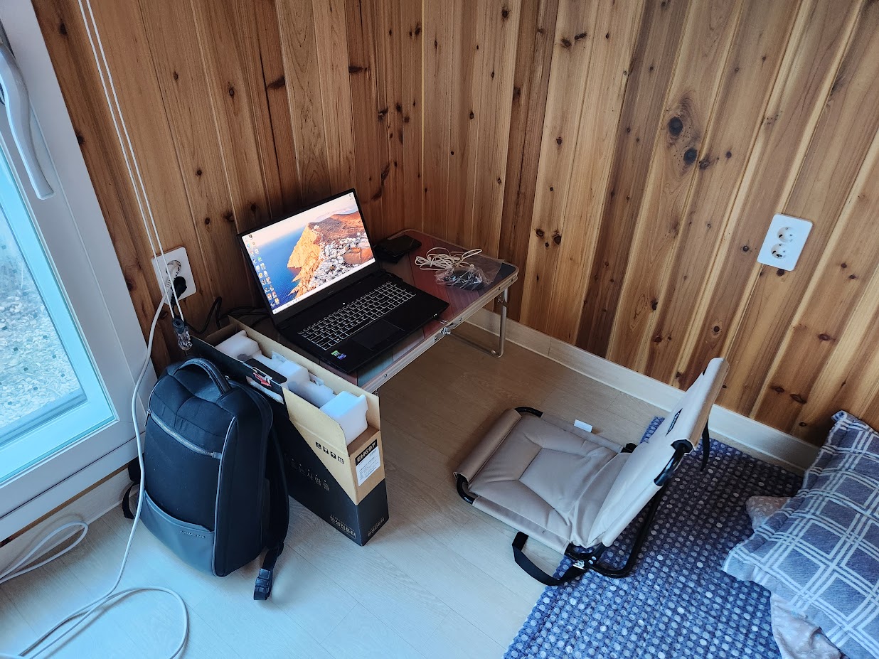 자~ 이제 쉴 동안 놀 거리를 세팅해야죠. 캠핑장 전체에 공중 무선 인터넷이 제공되기에 이렇게 노트북 PC를 가져와서 영화나 게임을 즐겨도 되고, 휴대전화를 통해 유튜브나 넷플릭스를 즐겨도 좋습니다. 신호 강도는 나름 좋은 편입니다.