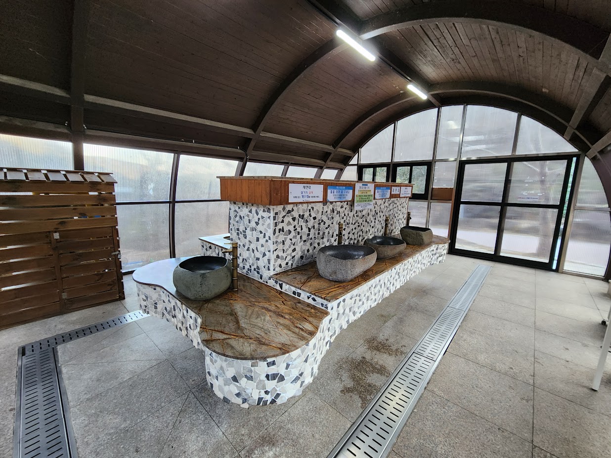 이전 포스팅에서는 산막텐트 주변의 소규모 개수대 내부를 소개했다면 이번에는 좀 더 큰 메인 개수대입니다. 전부 실내 개수대라 겨울에도 걱정이 덜합니다.