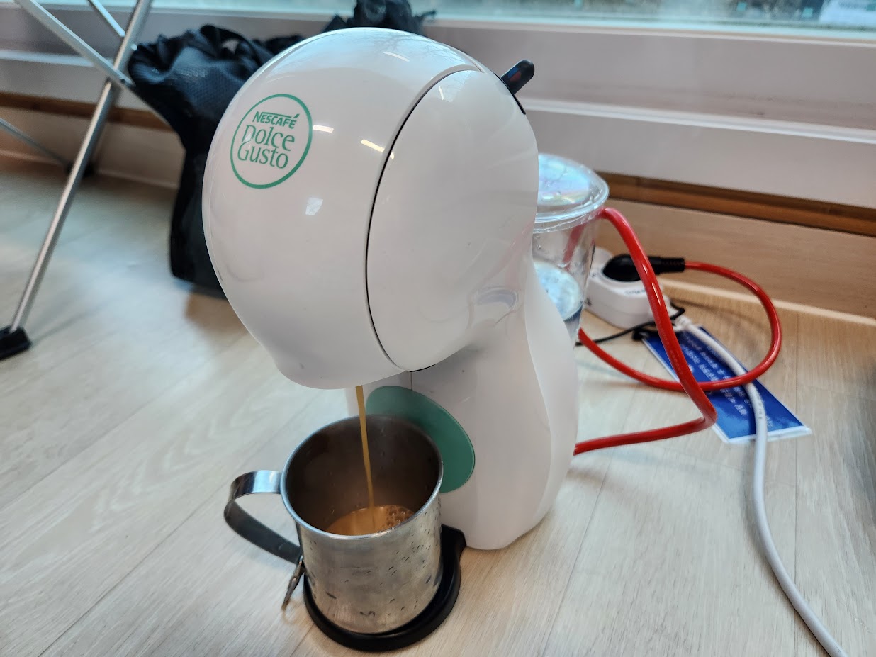 자... 전기 걱정 없는 하우스에 잡은 이상 다리 쭉 뻗고 커피를 내립니다. 전기를 칼같이 600W로 제한하는 캠핑장에서는 생각조차 못 하는 물건이지만, 여기는 그런 제한 따윈 없습니다. 캡슐 하나를 걸고 아메리카노를 찐하게 내립니다. 실내에 커피 향기가 퍼지고 이걸 호호 불며 마신 뒤...