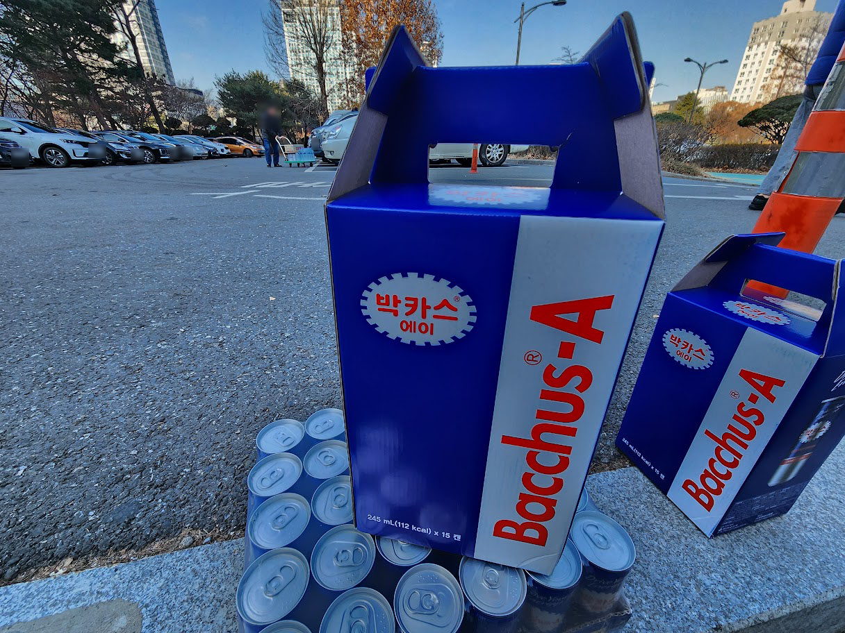 시즌 1에서도 적었지만 이 스파마트에서는 정말 특이한 음료를 구할 수 있습니다. 바로 이 박카스 A. 다른 어디에서도 못 구하고 PX 한정으로 파는 물건 되겠습니다. 물론 실상은 박카스맛 에너지 드링크에 불과합니다만, 박카스 대용량을 찾던 분이라면 이것 만으로도 계룡스파텔에 목욕을 올만한 메리트가 있습니다. 목욕탕 안 자판기에서도 팔지만 가격이 너무 비싸게 되어 있어 차라리 스파마트가 여는 시간에는 여기에서 사는게 반값 이하로 살 수 있습니다. 한 캔 단위로도 냉장된 것을 팔고 15개 선물세트, 30개 박스로도 살 수 있습니다. 다만 개당 가격으로 계산이라 1개짜리를 30개 사건 선물세트를 2개 사건 박스로 하나를 사건 가격은 똑같아 대량으로 사면 선물세트 팩이 가장 다루기는 쉽습니다.