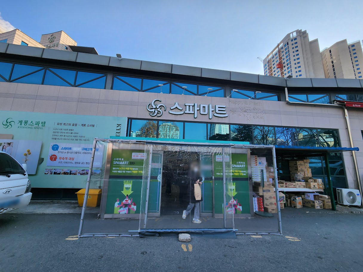 그런데 이 계룡스파텔은 다른 온천과 다른 특별한 점은 하나 있습니다. 그게 바로 대온천탕 옆에 붙어 있는 이 스파마트라는 조그만 수퍼마켓입니다. 사실 운영 주체가 같지는 않아도 온천에 마트가 붙어 있는 구조는 다른 곳에서도 있습니다만, 이 스파마트는 따로 이야기를 해야 하는 곳입니다. 바로 '민간인 이용 가능 PX'이기 때문입니다. 물론 엄밀히 말하면 PX는 아니고 부가가치세 붙을 것은 다 붙습니다만 PX 공급 가격을 기준으로 판매가격이 정해져 규모는 그냥 동네 수퍼마켓이라도 가격은 대형마트, 아니 서울 가락동 모 마트 이하로 떨어집니다.