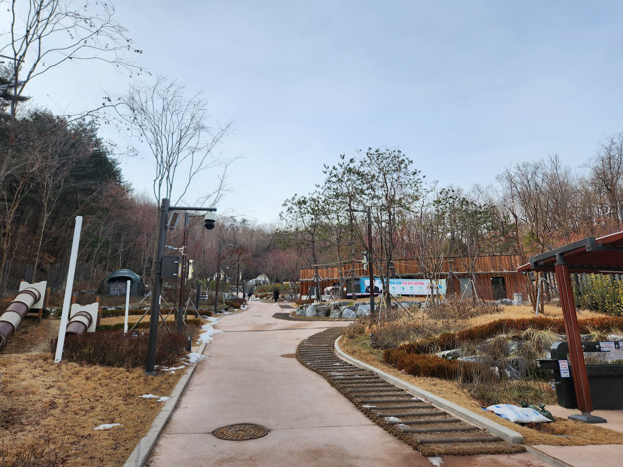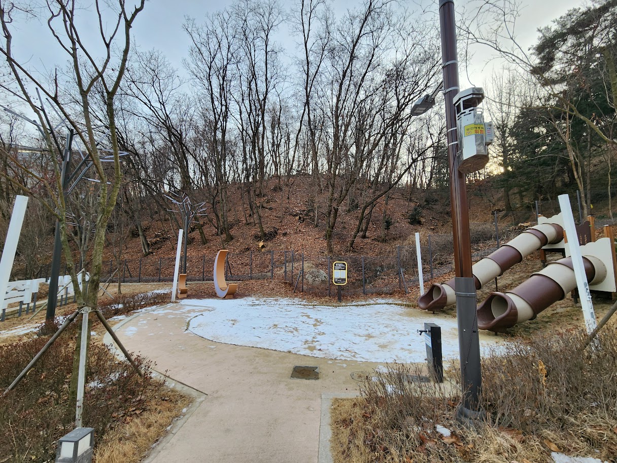 주차장 입구에는 어린이 놀이터가 있습니다. 지금 사진에는 노는 아이들은 없는데, 다음날 오전에는 그나마 노는 애들이 몇 명 있었습니다. 땅이 얼어서 모래놀이는 어렵지만 미끄럼틀은 그런 거 없죠.^^