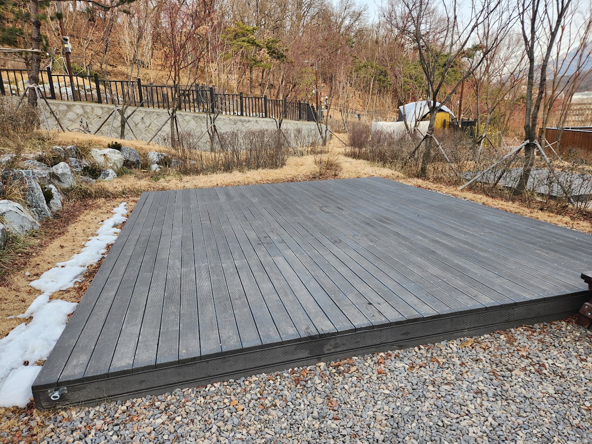 또한 영지 구성도 좋은데, 기본적으로 데크 영지에 텐트를 치지 않는 부분은 맨땅이 아닌 쇄석 영지라 물빠짐이 좋고 냉기가 상대적으로 덜 올라옵니다. 평탄화에 대한 고민도 덜 하는 만큼 내부에서 활동하거나 자기도 상대적으로 편합니다. 테이블까지 전부 갖춰져 있어 테이블을 따로 챙겨와야 하는 불편은 덜합니다. 대신 이 날씨에 거실형텐트를 쓴다면 저 테이블은 큰 의미가 없기는 합니다만.T_T