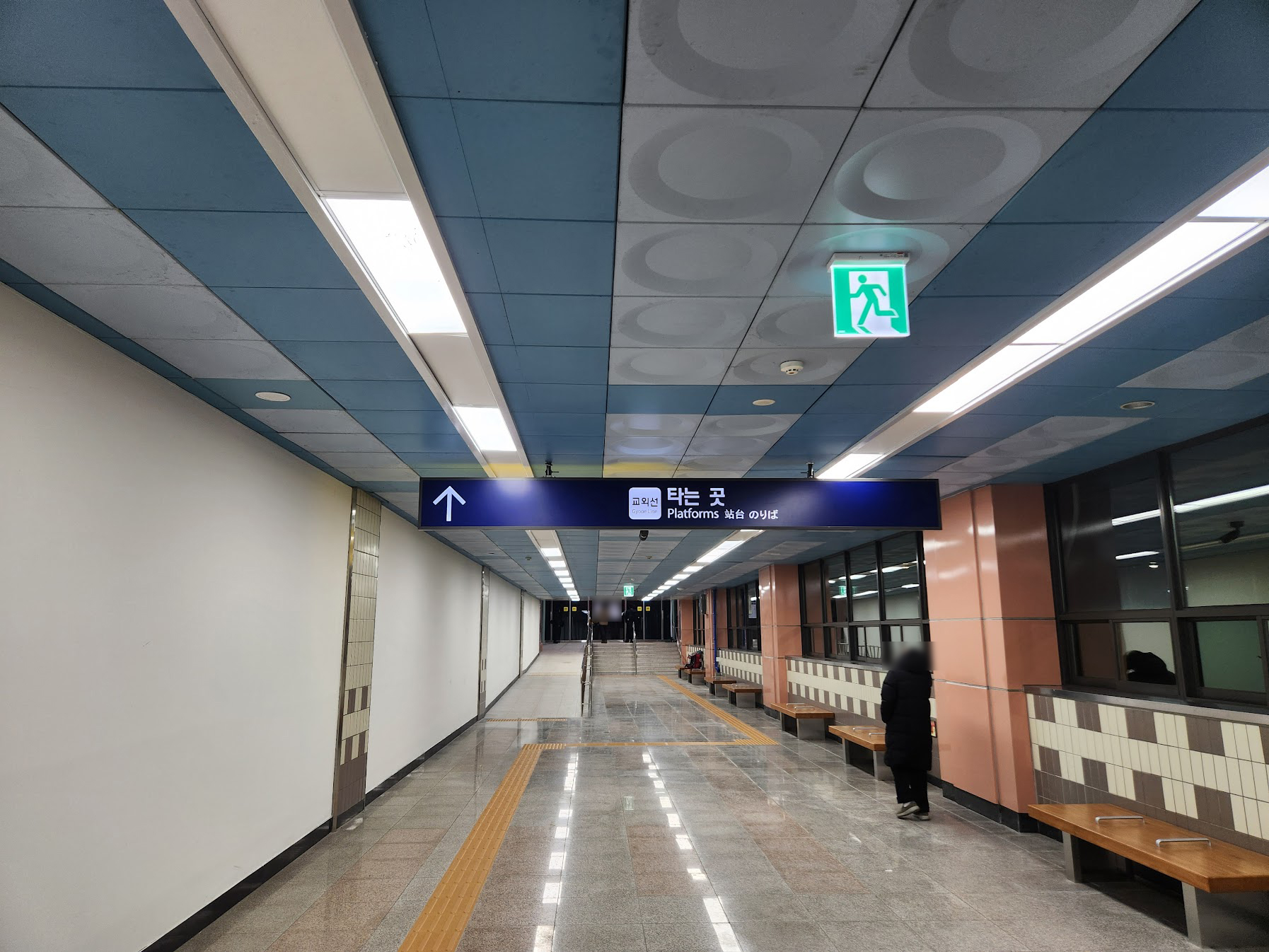아시는 분은 아시는 대곡역의 ㅈㄹ같은 환승 문제. 사실 땅 속으로 깊게 들어가는 GTX-A 환승만큼은 아니지만 경의선-교외선 환승도 X같기는 마찬가지입니다. 일단 경의선/서해선 플랫폼에서 위로 올라가 역 본건물이 있는 3호선 방향으로 이동합니다. 그 다음 계단을 내려가 역 밖으로 나갑니다. 그 역 밖에서 왼쪽을 보면 다시 한 층을 내려가는 계단이 나오는데, 이 계단을 내려간 뒤 다시 이 통로를 걸어가야 교외선 플랫폼이 나옵니다. 열차 출발 시간보다 20분 정도 먼저 열차가 도착하는데, 이 때 바로 탈 수는 없습니다. 사람들이 다 내린 뒤 청소를 하고 의자 방향을 돌려야 하기 때문입니다. 이게 10분 정도 걸리고 이후에 플랫폼으로 들어갈 수 있습니다.