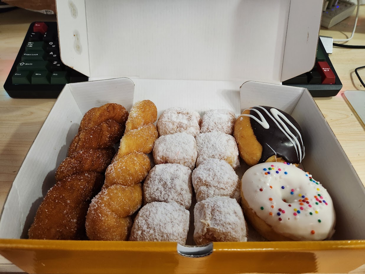 인터넷에서는 품질도 던즐급이다라 찬양을 하지만 사실 그 보다는 살짝 낮은 편입니다. 하지만 이 말이 퀄리티가 떨어진다는 것은 결코 아니며, 이 가격에 모든 것이 용서되고도 이자가 한참 남을 정도로 어느 정도의 퀄리티는 보장됩니다. 도너츠는 랜덤으로 들어가기에 그때 그때 달라질 수 있습니다. 4,000원으로 두 명이 그런대로 배를 채울 정도의 양과 칼로리가 보장되기에 가성비라는 말도 가볍게 넘습니다.