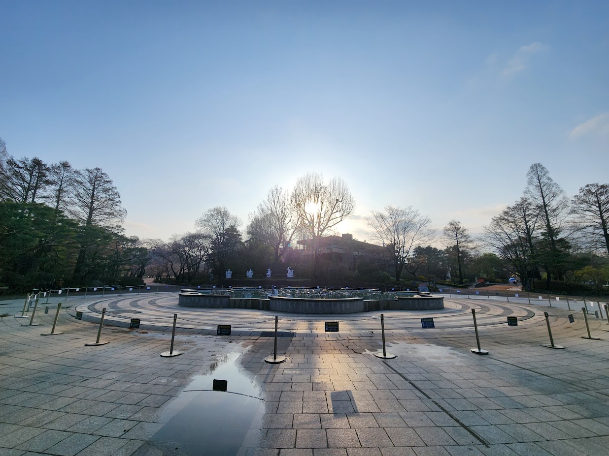 아침 7시. 보통 산책 오시는 분들은 외곽으로 도는 경향이 많아 음악분수 주변으로는 사람이 많지 않습니다. 가동을 멈춘 분수대 주변은 어쩌다 보이는 사람들 말고는 나름 조용하고 가끔 새소리만 들립니다.