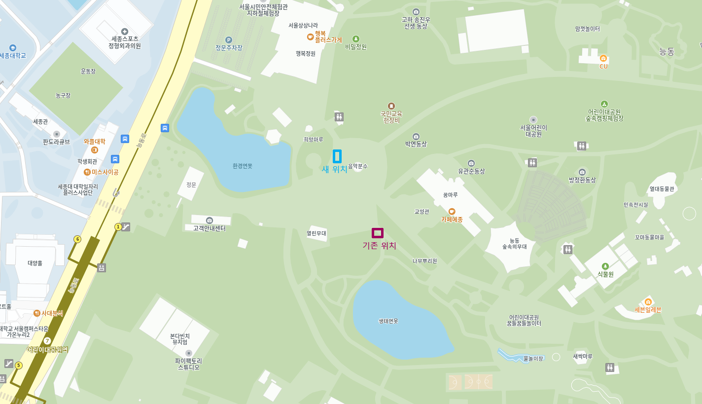 아, 그리고 어린이대공원에 나름 중요한 소식이 하나 있습니다. 바로 이 대공원에 하나뿐인 캔 자판기가 이사를 갔습니다.