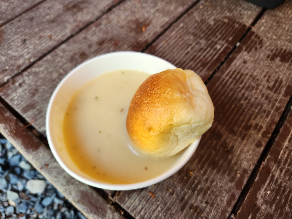 점심을 대구 시내에서 먹지 않았으니 점심 겸 간식을 꺼냅니다. 메뉴는 와룡시장에서 사온 떡볶이 + 튀김 + 만두에 봉하빵의 최고의 가성비 아이템, 2,000원짜리 햄버거입니다. 대구를 왔으니 만두는 납작만두로. 솔직히 대구 분들은 이거 안 드신다 하고 실제로도 그냥 형식적으로 무언가 넣은 그냥 만두피입니다만, 그래도 로마에 왔으면 로마에 맞춰야죠. 정말 굵은 가래떡 떡볶이에 튀김을 찍어 먹고 납작만두를 입에 넣고 마무리로 햄버거를 우적우적~ 이번 시즌에 가동을 다시 시작한 제빙기가 만든 얼음을 넣은 0% 라들러를 마시니 나름 기분은 즐거워집니다.