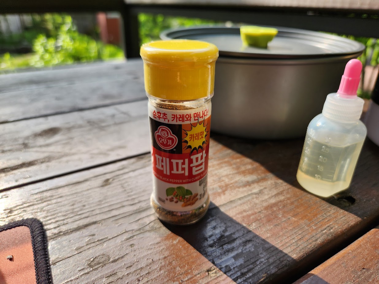 캠핑장 순회를 끝냈으니 먹어야죠. 이번에도 점심을 먹지 않은 관계로 여장을 풀자마자 간식을 준비합니다. 동행한 분께는 호떡을 구워서 바치고, 저는 풍기읍에서 사온 돼지 등심을 굽습니다. 돈까스용인줄 알고 샀는데 잡채용이었다는 것이 문제지만 어차피 구우면 고기죠.^^ 이번에는 냄새 잡기 목적으로 카레+후추 믹스 후추를 뿌렸는데, 그 결과 색상이 좀 괴상해지긴 했지만 나름 간도 잘 배고 냄새도 잡는 데 성공했습니다. 다만 함께 끓인 어묵 매운탕은 미칠듯이 맛이 없었습니다.T_T