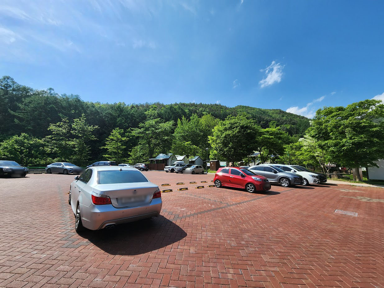 열심히 산길을 타고 삼가야영장에 도착하면 중형 규모의 주차장이 기다립니다. 여기는 오토캠핑장이 아니라서 주차장과 영지가 약간 거리가 있습니다. 물론 전체 캠핑장 크기가 정말 큰 편은 아니라서 끔찍하지는 않은데, 그나마 일반 영지와 하우스는 좀 주차장과 가깝지만, 산막텐트는 안쪽으로 있어 여기를 잡으신 분들은 어떻게 짐을 옮길까 고민하실 것입니다.