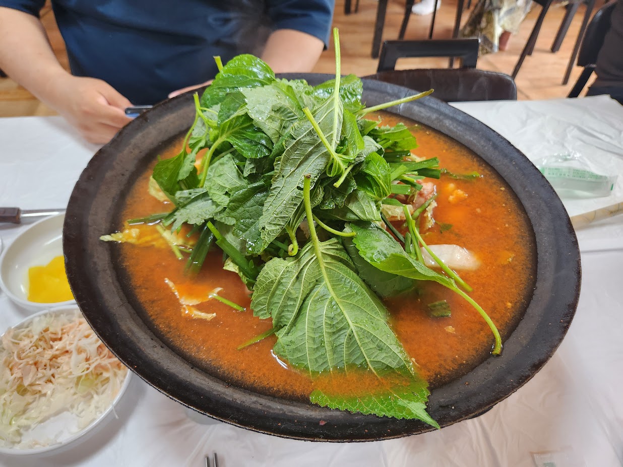 그래도 양은 변함이 없습니다. 오히려 가격이 오른 만큼 고기가 조금 더 들어갑니다. 태백식 닭갈비는 사실 닭 조각이 몇 개 안 들어가서 닭고기 뜯는 재미로 오시면 실망스럽습니다만 그래도 1인분당 한 조각은 더 들어갑니다. 레알 닭갈비만 넣어 준다는 곳과 달리 뜯어 먹을만한 것으로 나오기에 '고기가 없잖아~'를 외칠 필요는 없습니다. 또한 지금은 시기가 시기라서 냉이가 아닌 깻잎이 들어가는데, 점점 가면 갈수록 냉이가 들어가는 시기가 짧아지는 듯 합니다.T_T