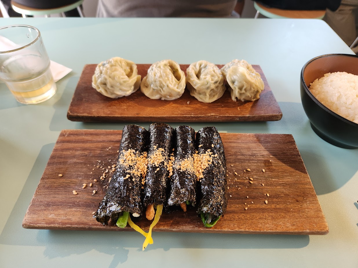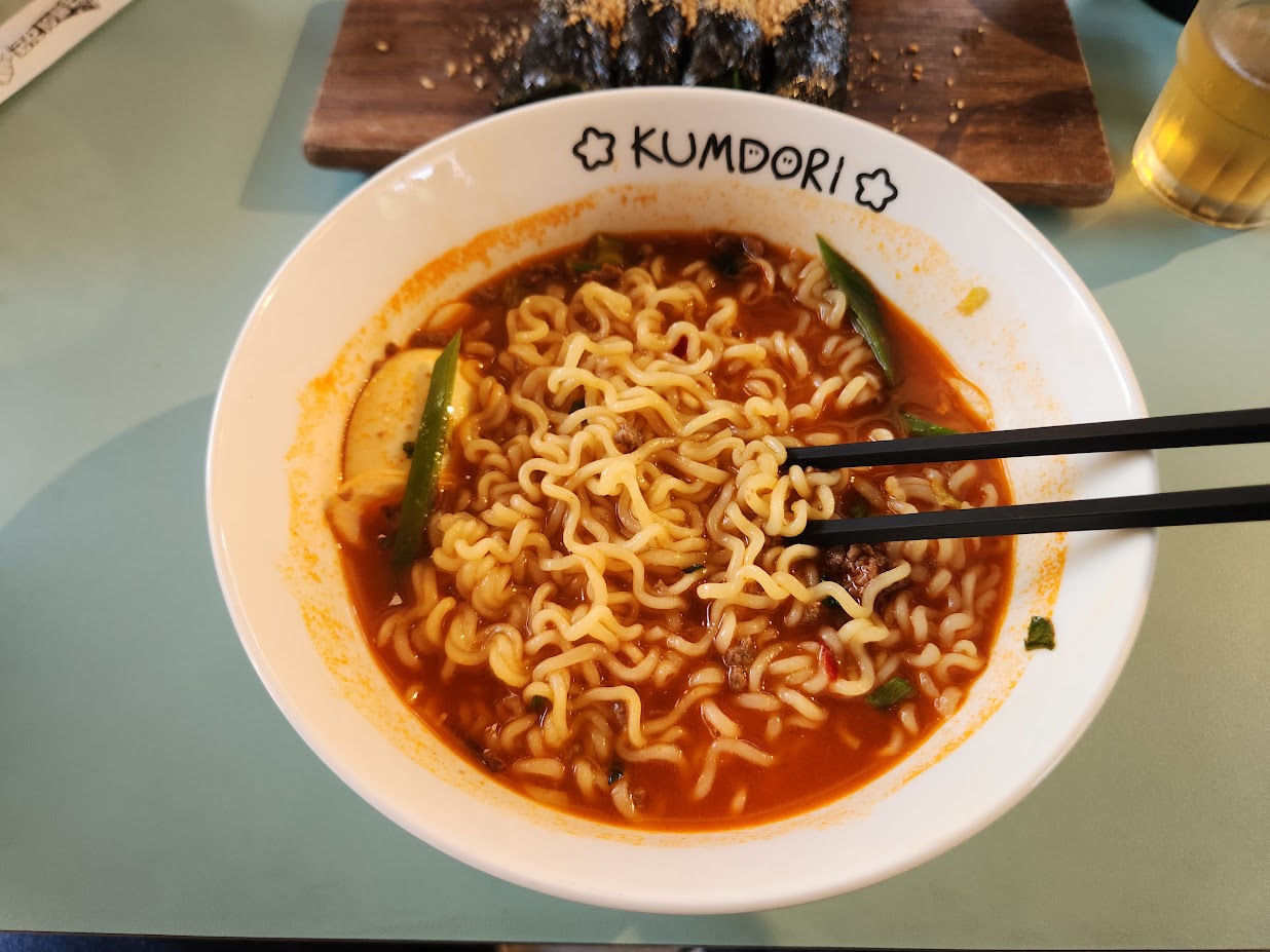 사이드 메뉴로 어묵김밥과 만두를 시킵니다. 만듀는 그냥 냉동 손만두, 김밥은 손말이입니다. 사실 이 사이드 메뉴의 가성비는 좋다고 말하기는 어렵습니다. 이왕 왔으니 라면만 먹기는 그러니 함께 시키는 것에 가깝습니다. 만두야 그냥 만두맛이고 김밥은 무난하지만 저 양을 생각하면 확실히 가성비는 좀 거시기합니다.