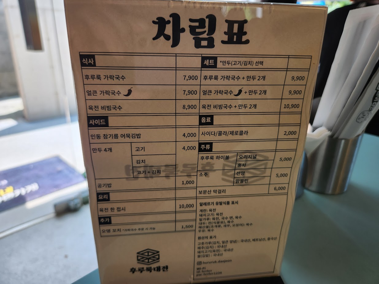 이게 메뉴판인데... 이거 라면집 맞냐 당황하게 하는 메뉴판입니다. 밖에는 라면가게라 되어 있는데 라면 설명은 없고, 메뉴판에도 라면은 없습니다. 하지만 재차 적지만 라면집 맞습니다. 이 메뉴판에 없는데 꿈돌이라면 쇠고기맛/해물맛 주문이 가능하고 각각 4,500원/5,500원입니다. 메뉴판 보고 놀라서 나오는 일이 없길 바랍니다.^^