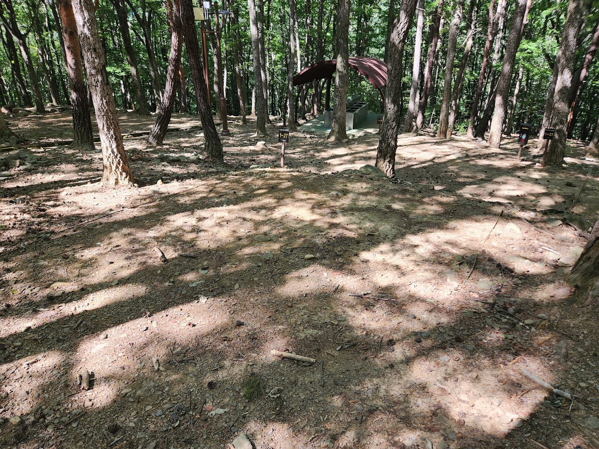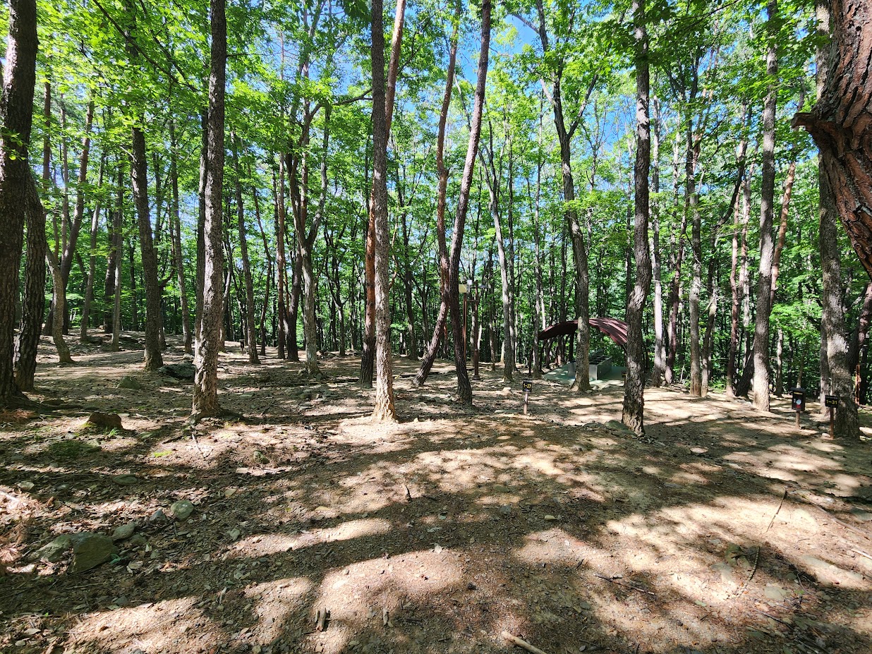 일단 전반적인 영지 구조는 이렇습니다. 덕유대야영장 1~6 야영장은 전형적인 숲 캠핑장으로 정말 울창한 숲 속에 영지가 있습니다. 그렇지만 영지 상태가 좋다고 말하기는 어려운데, 각 야영장 안에서도 영지가 계단식으로 배치되어 있는데다 영지에 따라서는 마사토도 아닌 그냥 맨땅에 줄 그어놓은 수준이라 장비가 좀 부실하면 자는 것도 좀 불편합니다. 두꺼운 에어매트나 에어백스, 그게 아니면 아예 야전침대를 이용하는게 편안한 잠자리를 보장할 정도입니다. 물론 잘 잡으면 그런대로 평탄화가 잘 된 영지를 만날 수도 있습니다.