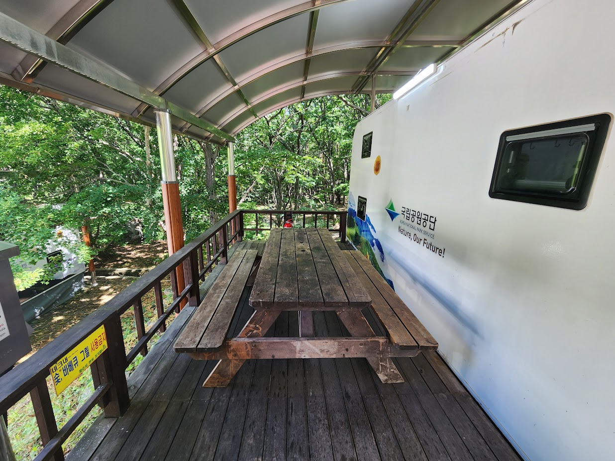 개수대나 화장실은 각 영지 중간중간 배치되어 있으나 영지 수가 워낙 많은데다 계단식 영지 구조상 각 시설을 이용하는 데 체력이 더 필요하기에 체감적으로는 더 적게 느껴집니다. 1~6 영지는 동계에는 아예 운영하지 않아서 모든 개수대는 기본적으로 외부 개방형이며 온수는 전혀 기대하시면 안 됩니다. 산속이라 기온이 30도 이상인 지금도 물은 꽤 차갑습니다. 결론적으로 1~6 영지는 가족 단위로 오는 캠퍼보다는 풍경을 즐길 줄 알되 불편함도 감수할 수 있는 어느 정도 캠핑 경험이 쌓인 솔로 또는 중장년 캠퍼에게 더 좋은 캠핑장이라 할 수 있습니다.