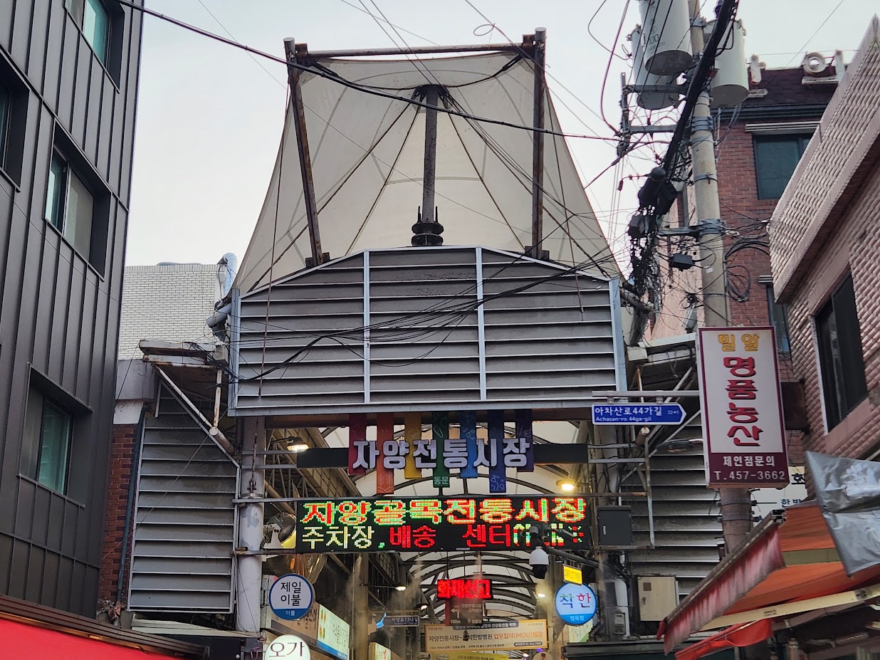 요즘은 모든 장보기를 쿠팡에 올인시키는 분도 계시고, 그게 아니더라도 대형마트만 다닌다는 분도 적지 않지만 그럼에도 시장은 나름 가치가 있습니다. 저처럼 말은 자취지만 집에서 거의 조리를 하지 않는 사람에게도 그러한데, 요즘은 대형마트의 공산품 가격 경쟁력도 많이 떨어져서 특가 품목이 많지 않고 쿠팡은 원래부터 싸서 사는 곳이 아니라 편해서 사는 곳이죠. 오히려 시장 안 수퍼마켓이 싼 물건이 나올 때가 적지 않고 식자재가 아닌 그냥 먹거리도 마트나 오픈마켓에서 해결이 안 되는 다양한 품목과 조리 수준을 자랑합니다. 그래서 마트도 자주 가지만 마트를 가는 날에도 시장은 한 번은 들려 돌아다닙니다. 오늘 포스팅은 그러한 동네 전통시장의 변화상입니다.
