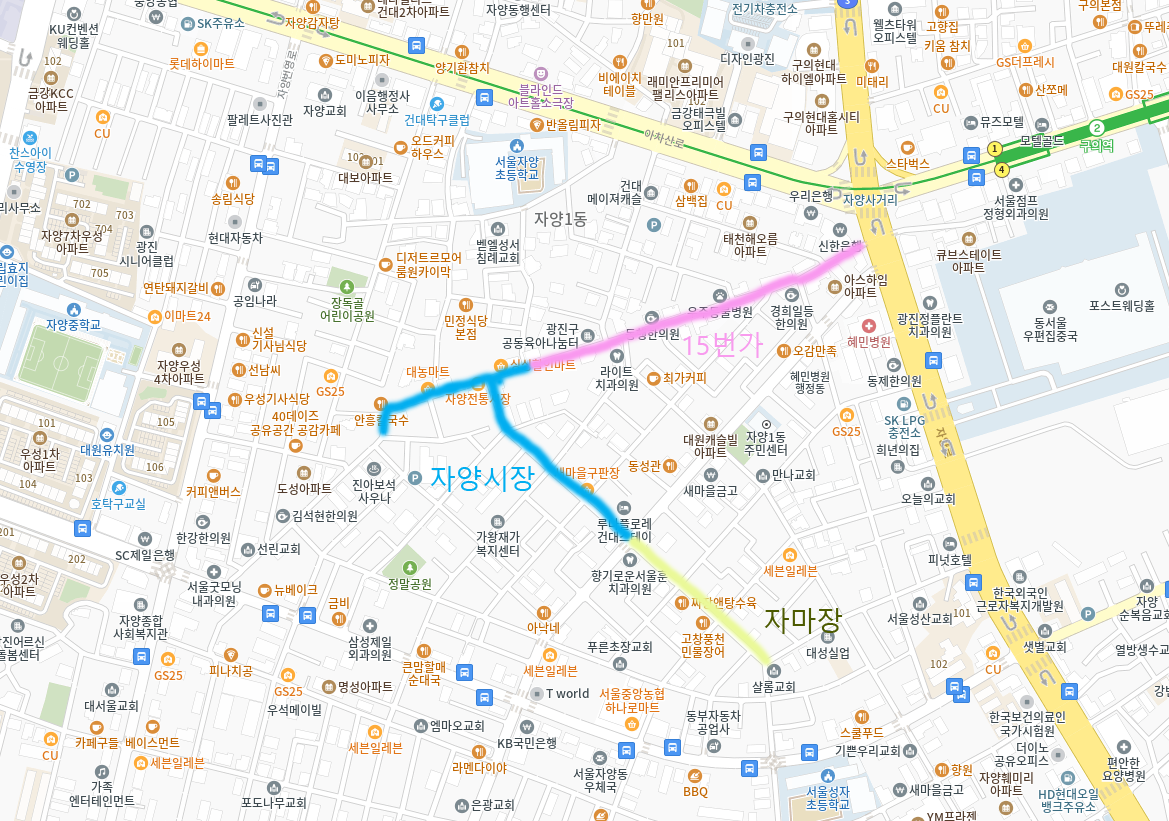 오늘 가보는, 아니 그냥 매주 한 번쯤은 가는 이 시장, 광진구 자양시장입니다. 사실 광진구에서 밀어주는 전통시장은 뚝섬쪽에 있는 노룬산시장입니다만, 사실 여기는 시장이 하나가 아니며(노룬산시장+자양한강시장) 재개발때문에 과거보다 크기가 줄어서 오히려 동네 시장으로서의 정체성을 따지면서 뭔가 다양한걸 찾으면 이 자양시장이 더 낫습니다. 아, 정말 도로 지정체를 느끼는게 소원이시면 중곡동 신성시장을 가셔야 합니다만.^^