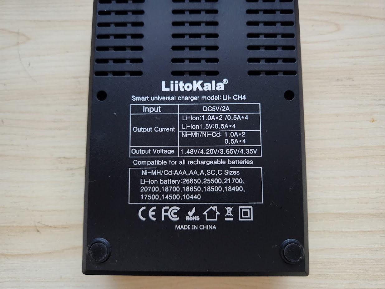 위에 적은 바와 같이 이 충전기는 USB C 타입 입력을 받습니다. 이 회사의 인기 모델은 Lii-PD4라는 것인데 기본적으로 이 물건, Lii-CH4와 생긴건 같고 대신 220V AC 입력 모델입니다. 5V 2A 입력이라 굳이 고속 충전기를 쓸 필요는 없습니다. 대신 PC에 연결해 충전하는 것은 PC의 USB 포트의 전류량 때문에 충전지 한두개 연결할 때 말고는 그리 권장하지는 않고 따로 충전기를 쓰는 것이 좋습니다.