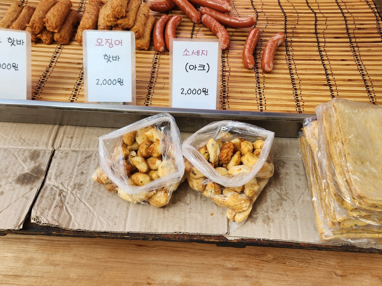 그래도 장터에 오면 먹을 것은 먹어야죠. 밥반찬용 덴푸라를 사고 어묵 꼬치를 꽂아 입에 물고 장터를 거닐고 이것저것 담습니다. 그리고 마지막에는 어묵과 떡볶이, 튀김이라는 흔한 메뉴를 점심으로 먹습니다. 만두도 살까 했으나 너무 인기 메뉴라 찌는 속도에 비해 줄이 너무 길어 과감히 포기해야만 했습니다.T_T