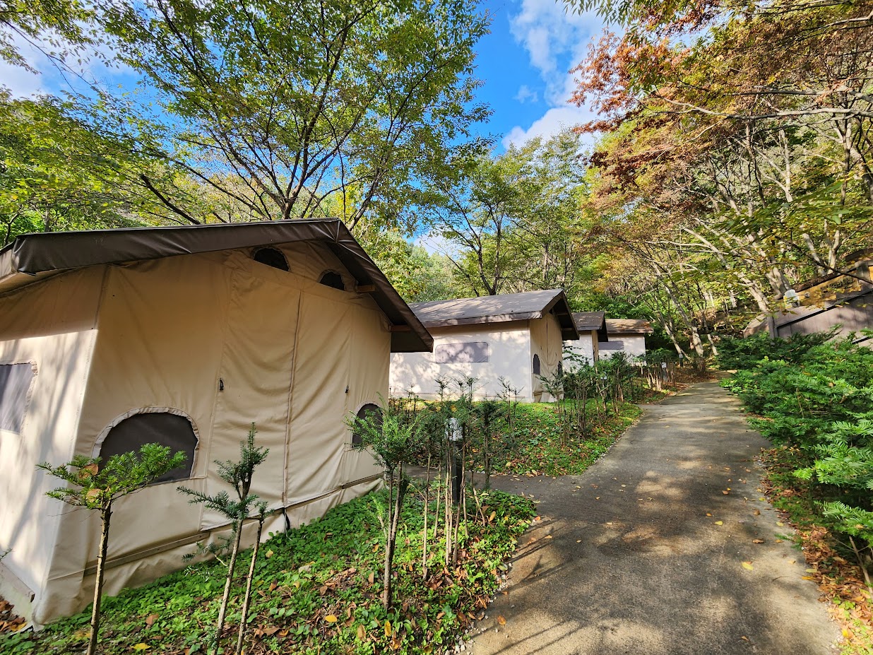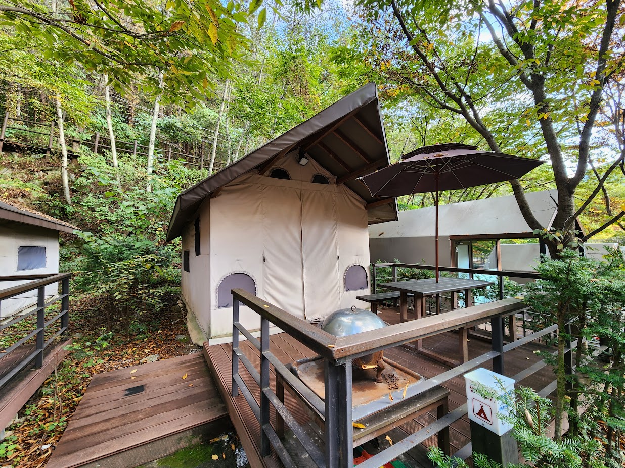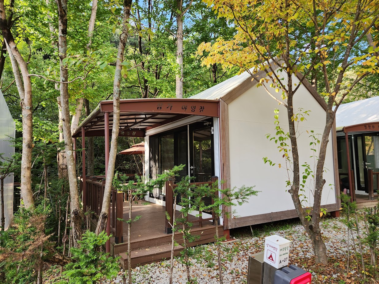 추신: 이 캠핑장에는 안내도에는 나오지 않는 비밀의 캠핑장이 또 있습니다. 안내도 가장 오른쪽까지 가면 이런 타이틀이 붙은 산막텐트 세 동이 더 있습니다. 사실 일부 캠핑장에는 이렇게 안내도에도 안 나오는 비밀의 공간이 있는 경우가 좀 있습니다.