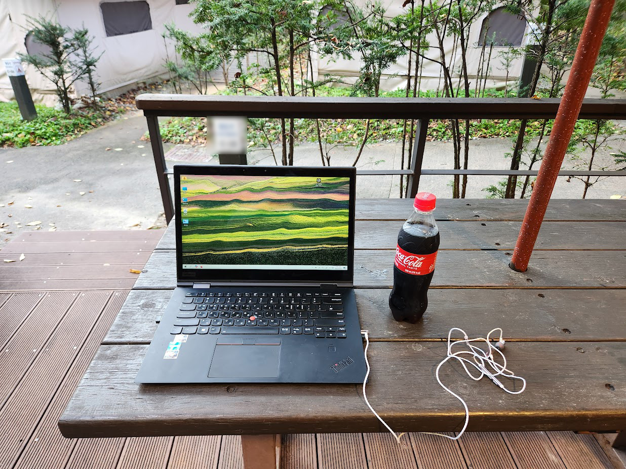 그러고 있으니 캠핑장에 방송으로 '재즈 공연을 하니 보러 오시라'라는 내용이 나옵니다. 이런 걸 안 보러가면 아깝죠. 자연에서 커피 한 잔을 빨며 게임 모드에 빠진 요리사는 버려두고 산책을 겸해 주차장으로 나옵니다. 귀에 익은 재즈가 캠핑장 끝까지 울려 퍼지고 저는 무대쪽이 아닌 그 아래에서 산책을 하며 음율에 푹 빠집니다. 역시 가을이나 겨울에는 재즈가 참 잘 어울립니다.