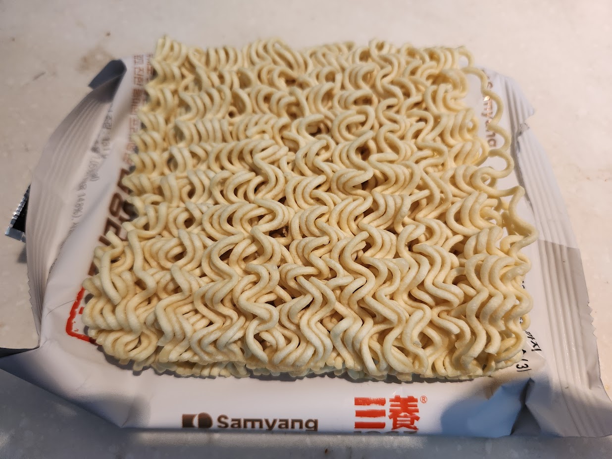 그러면 본격적으로 뜯어봅니다. 면은 일반적인 삼양라면 사각면이지만 약간 색감이 다르고(진하고), 냄새도 뭔가 좀 다릅니다. 면을 살짝 뜯어 먹어보면 팜유 유탕면(쇠고기면)보다는 조금 더 고소합니다. 그렇다고 이 비싼 라면을 라면땅으로 먹기는 좀 그렇죠. 면이 맛있어도 여전히 라면땅의 최고봉은 쇠고기면입니다.^^