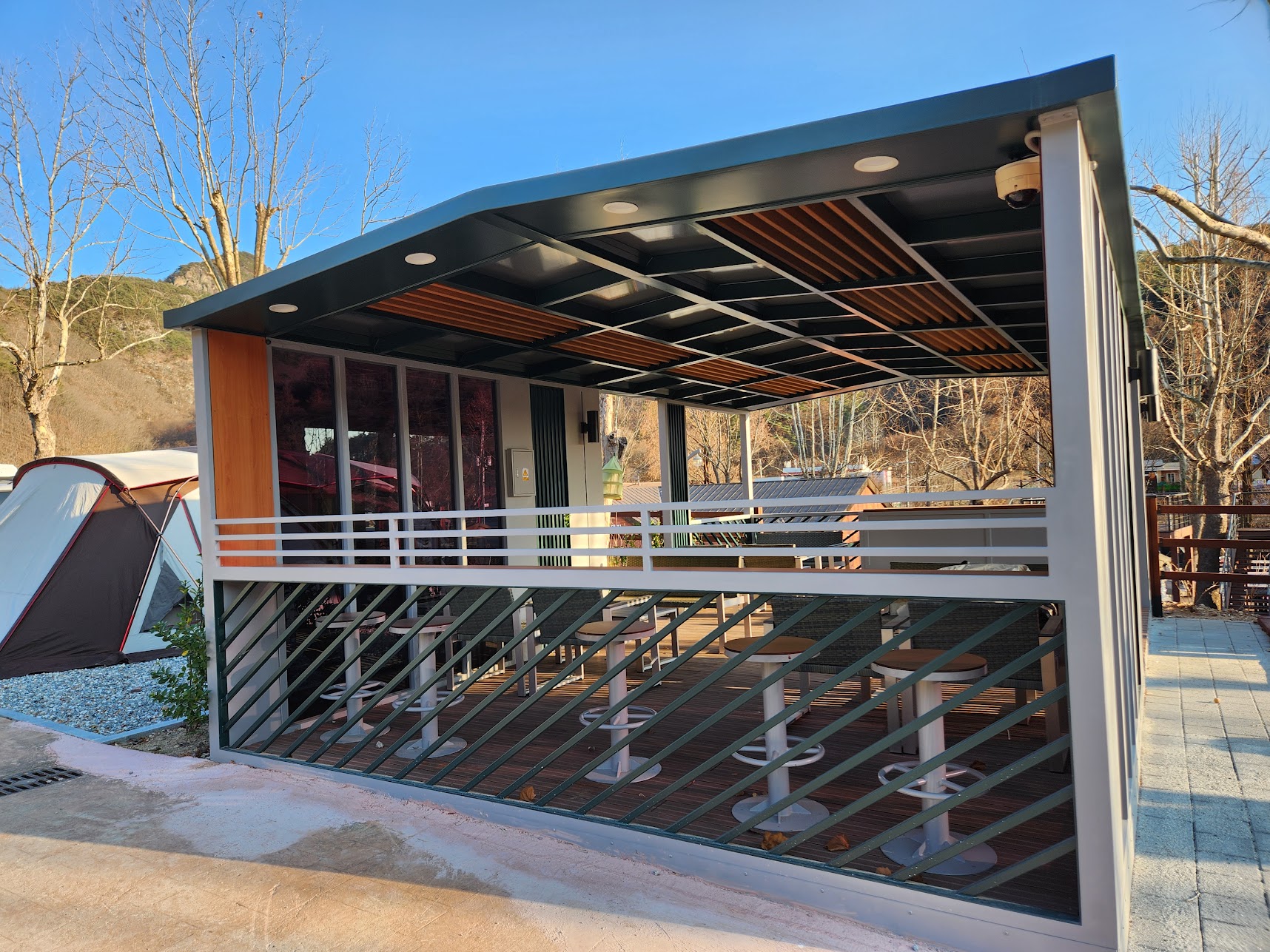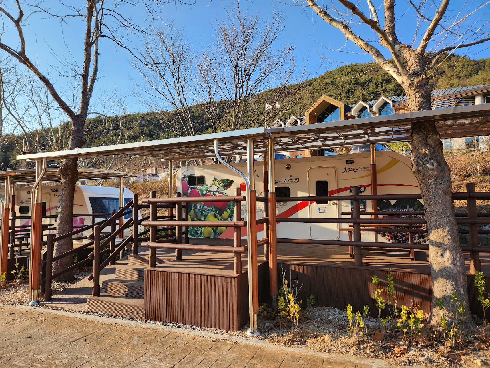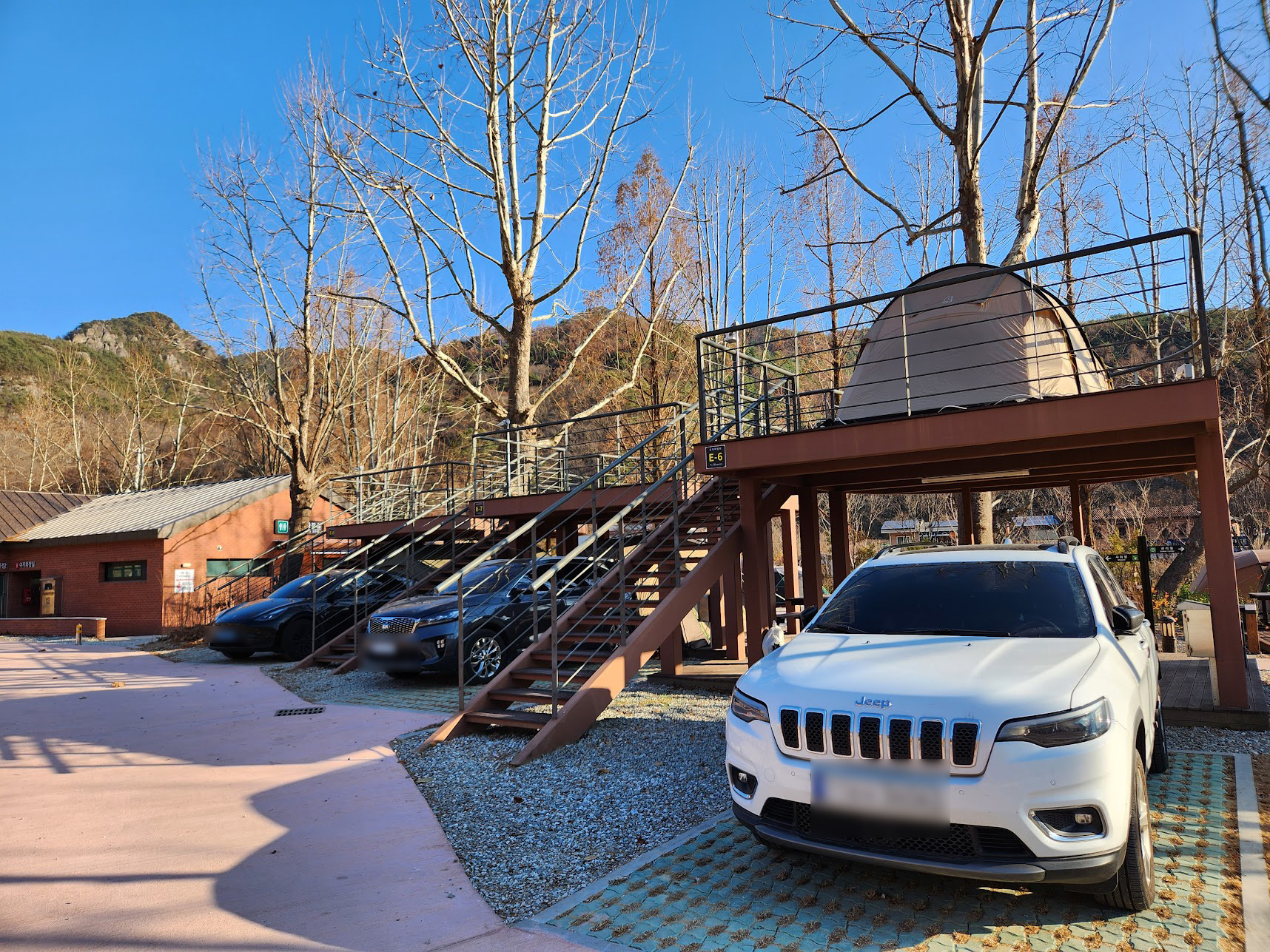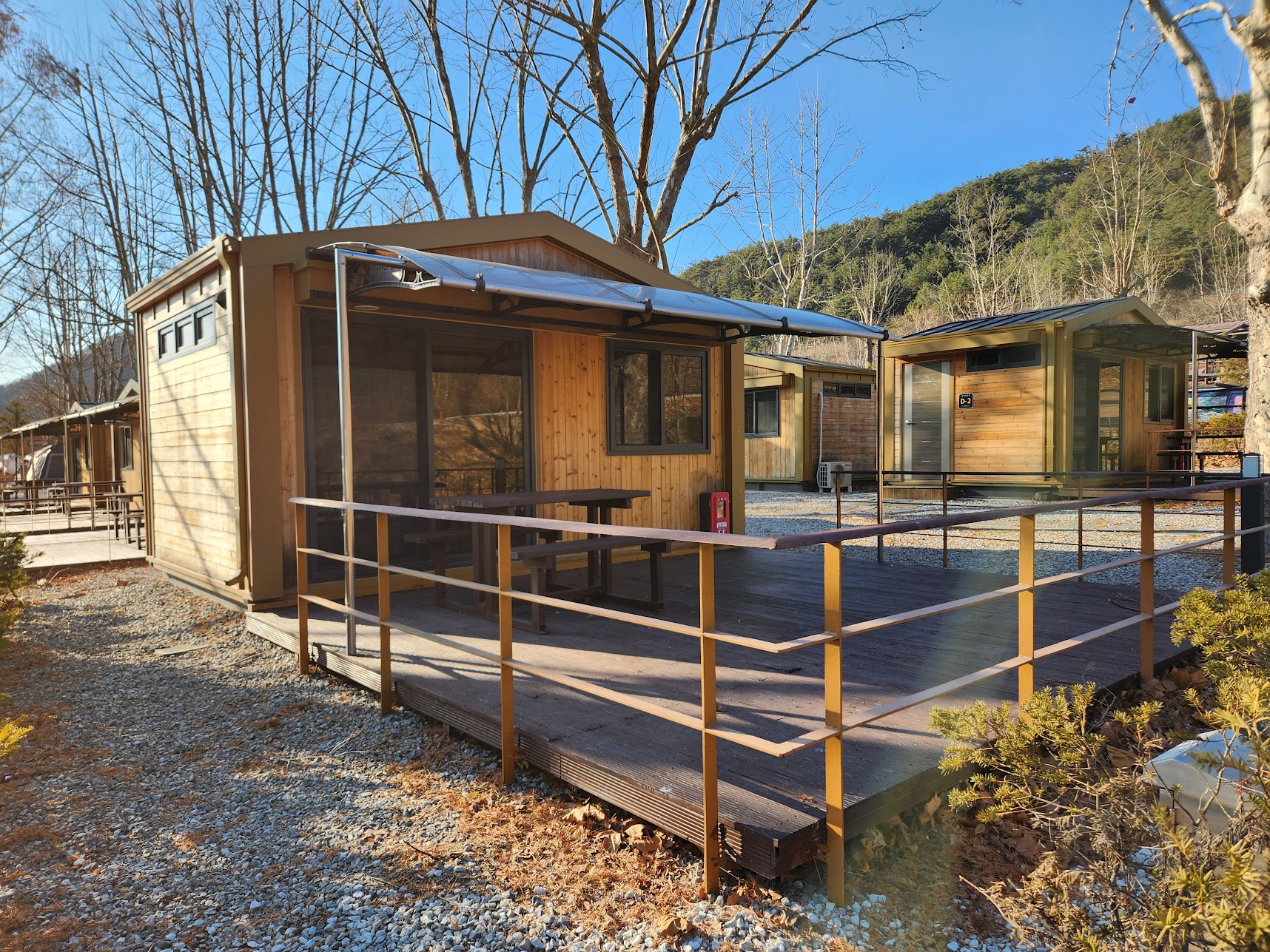 3층의 카라반(C 영지)와 1층 구석의 하우스(D 영지)는 올해는 그냥 대충 넘어갑니다. 동계에는 운영하지 않기 때문인데, 카라반은 일반적인 4인 규격이며, 하우스도 4인 규격의 나무집입니다. 전부 외부에 나무 테이블과 캐노피가 설치되어 있어 폭우만 내리지 않으면 야외에서 밥먹기도 문제가 없습니다. 그리고 여기 하우스, 에어컨 완비라 한여름에도 푹푹 찔 걱정은 안 하셔도 좋습니다. 대신 위에 적었듯이 하우스는 별도 주차 공간이 없어서 저 주차 전쟁에 뛰어 들어야 합니다. 하우스 입실은 일반 영지보다 한 시간 늦어서 이 점에서는 좀 불리합니다. 카라반은 도로 옆에 전용 주차장이 있어서 주차 전쟁과는 거리가 멉니다.