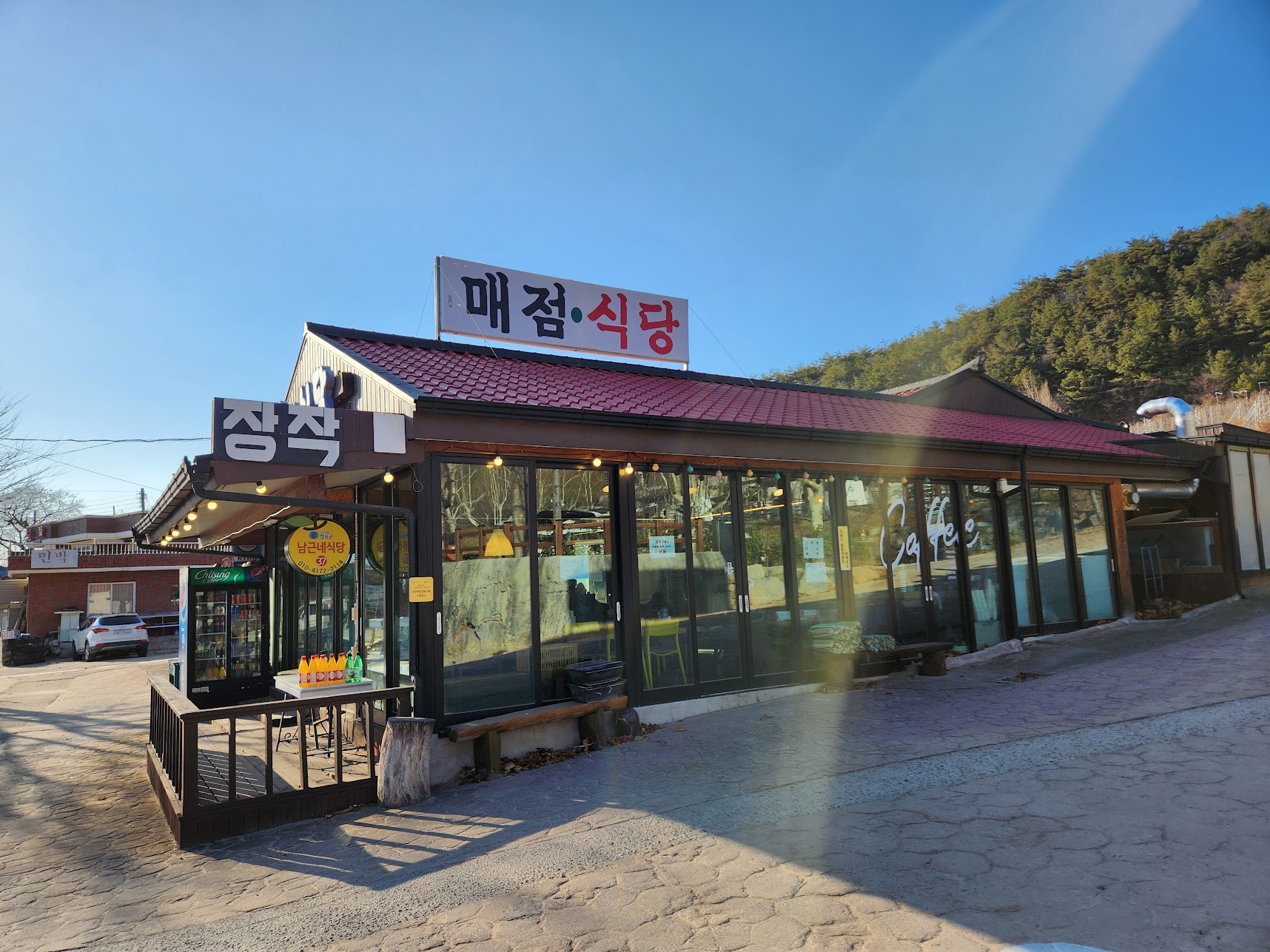 캠핑장 안은 다 돌아 보았으니 이제 밖으로 눈을 돌려봅니다. 상의야영장은 과거부터 그 안에 매점이 있었습니다. 물론 안내도에는 이 매점이 없는데, 일단 캠핑장 외부 부지로 되어 있기 때문입니다. 이 캠핑장은 좀 특이하게 캠핑장과 그 외부의 경계가 애매모호한 면이 있는데, 왼쪽(서남쪽)에 있는 마을에서 이 캠핑장 도로를 이용하기도 합니다. 그래서 일단 이 매점은 법적으로는 캠핑장 내부 시설은 아니지만 현실적으로는 그냥 캠핑장 매점으로 통합니다. 뭐 식당을 겸하는 곳이라서 파는 것은 그냥 매점 수준이라는 점은 변하지 않습니다만.