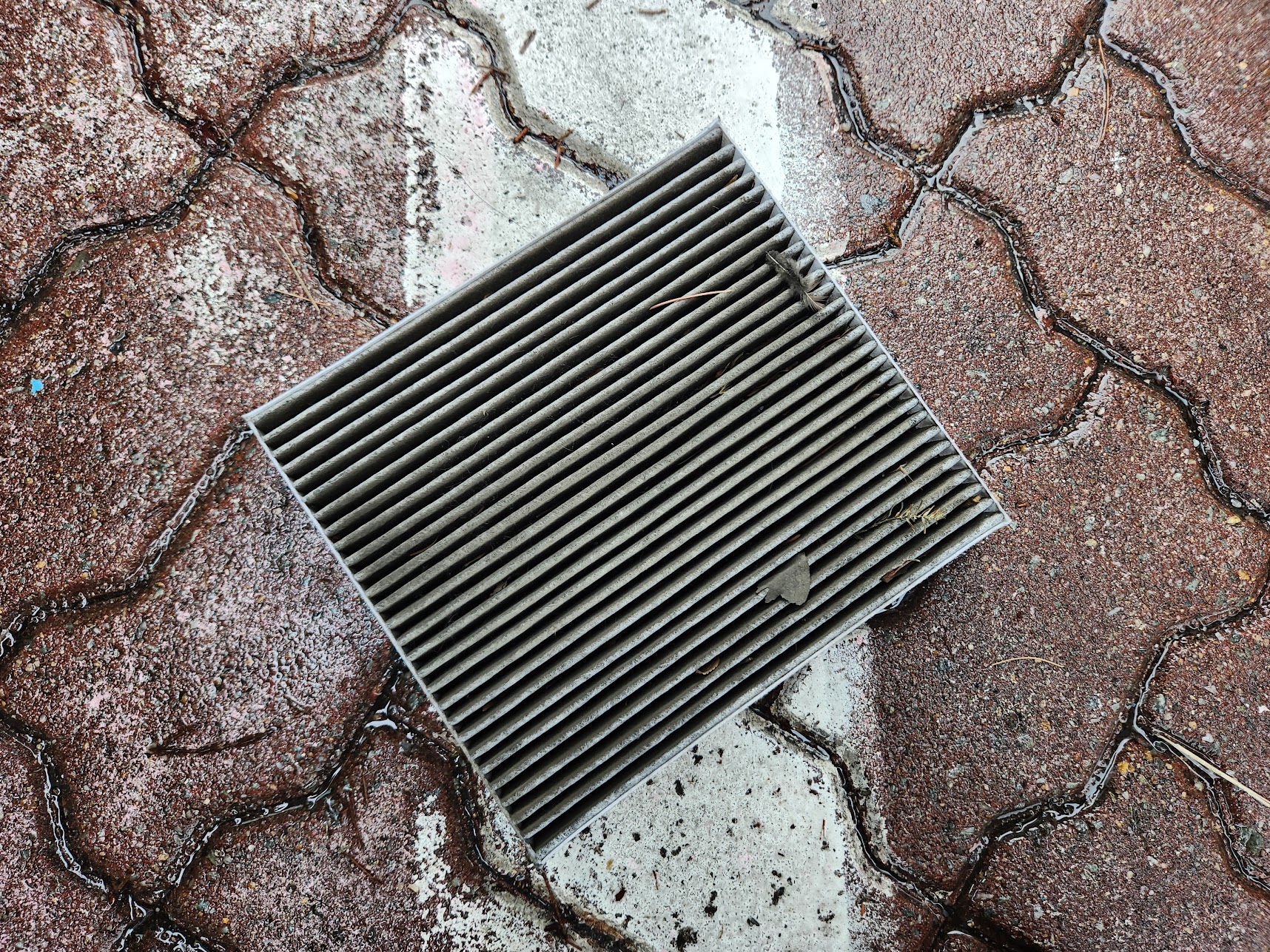 좀 더러운 것 구경을 시켜 드려 죄송하지만, 6개월쯤 안 간 필터 상태가 이렇습니다. 그만큼 우리가 마시는 공기가 깨끗하지 않다는 의미입니다. 여기에 나뭇잎 등도 섞여 있습니다. 일반 쓰레기로 싹~ 쓰레기통에 박아주시고...