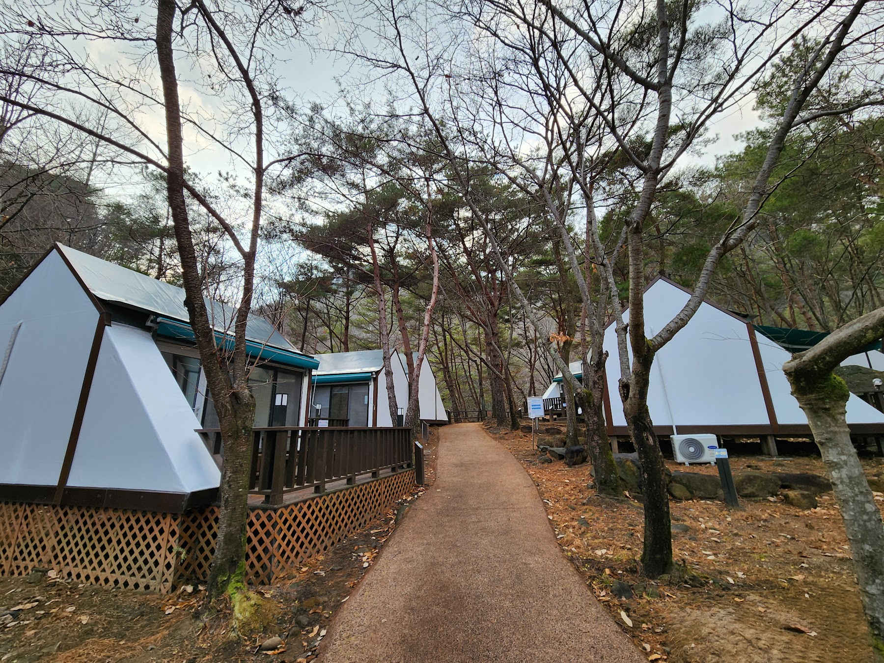 그럼에도 불구하고 이 캠핑장은 캠핑을 나름 날로 먹고자 하는 분, 편하게 즐기고자 하는 분께는 결코 나쁘지 않은 곳입니다. 캠핑장 최초 개설 당시에는 그냥 평범한 캠핑장이었지만, 개량을 통해 하우스와 산막텐트 중심으로 완전히 재편했기 때문입니다. 즉 텐트가 없는 사람들도 캠핑을 맛볼 수 있는 그런 곳이 되었습니다. 그리고 이 덕분에 여름에도, 겨울에도 캠핑을 날로 먹을 수 있는 정말 좋은 캠핑장이 되었습니다. 서울에서 정~말 멀다는 점을 제외하면 '날로 먹을 수 있음 + 인기가 미묘함'이라는 점 덕분에 하계와 동계에 이 캠핑장을 찾을 수 밖에 없습니다.