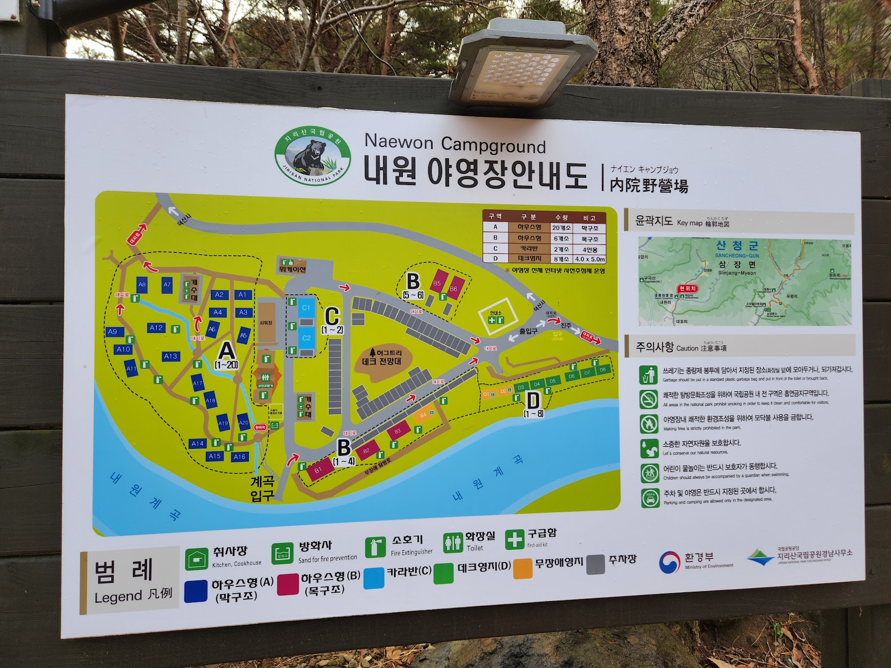 우리나라에는 국립공원이 24곳 있는데, 이 가운데 캠핑장이 있는 곳이 총 20곳입니다. 경주국립공원은 산도 바다도 아닌 유적지라 캠핑장이 있기가 좀 뭣하고, 한라산국립공원은 이건 국립공원인데 제주도 관할입니다. 올해 새로 지정된 금정산국립공원은 그냥 부산 뒷산이죠. 뭔가 있을만한데 없는 속리산국립공원이 미스테리이기는 한데... 어쨌거나국립공원공단 계열 캠핑장이 가장 많은 곳이 지리산입니다. 그러나 그 대다수는 사실상 3계절 캠핑장이고 동계에 문을 여는 곳은 캠핑카 전용인 학천야영장과 그리고 이 하우스전용 캠핑장인 내원야영장 두 곳 뿐입니다. 뭐 그 다음 많다는 월악산도 닷돈재 말고는 운영을 안 하는건 마찬가지입니다만.