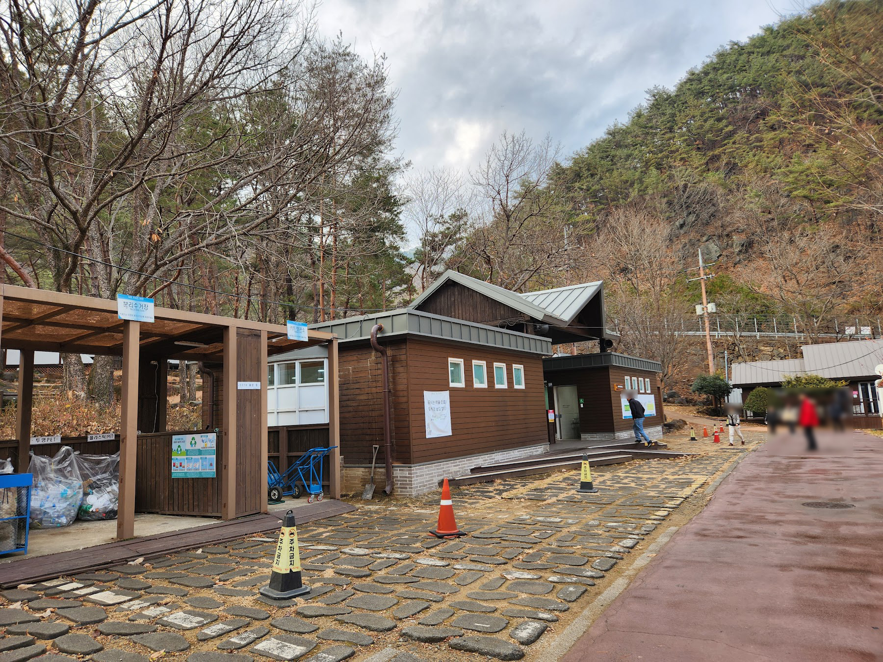 이렇게 모든 준비를 다 갖추고 캠핑장의 문을 들어서면 오른쪽에 관리사무소가 있습니다. 체크인을 하면서 쓰레기봉투도 구매하면 되는데, 일반/음식물 봉투를 모두 사야 하니 주의하셔야 합니다. 아, 그리고 몇 개 없지만 관리사무소 옆에는 카트가 있는데 이건 A 영지를 잡았다면 정말 필수로 필요한 물건입니다.
