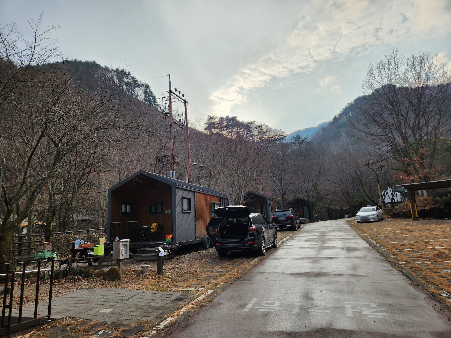 아무래도 동계 + 입지가 조금 애매모호함이라는 특성상 캠핑장에는 그렇게 많은 사람이 모이지는 않았습니다. 원래부터 인기가 많은 카라반(C 영지)와 하우스(B 영지)는 다 들어 찼지만, A 영지는 물가쪽으로만 좀 야영객이 보이고 숲 안쪽은 비었습니다. D 영지도 그나마 접근성이 좋은 바깥쪽에만 캠퍼들이 있는 정도입니다. 반대로 주차 등에는 여유가 있어서 다른 분 캠핑하는 것 구경할 재미는 없어도 몸은 편합니다.