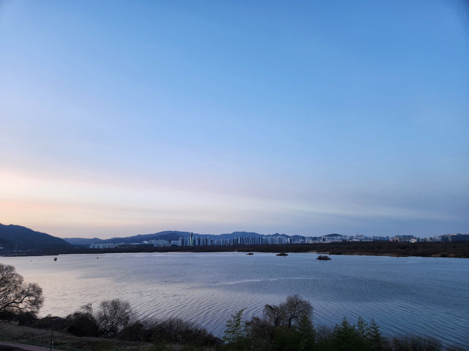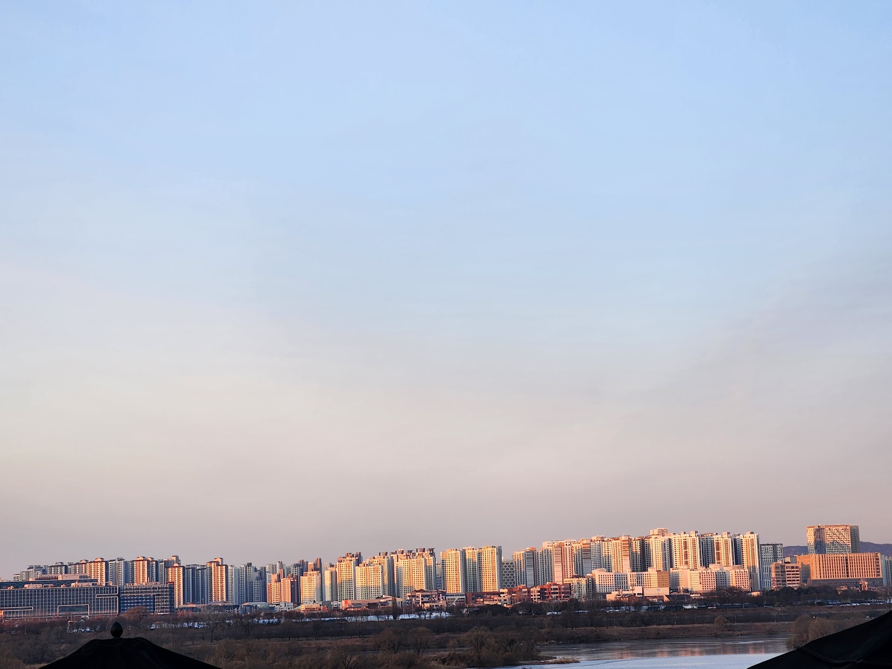 건너편 미사리에는 햇살이 다이렉트로 내려 쬐는데도 해는 보일 생각을 안 합니다. 다들 지쳐서 돌아가는데...