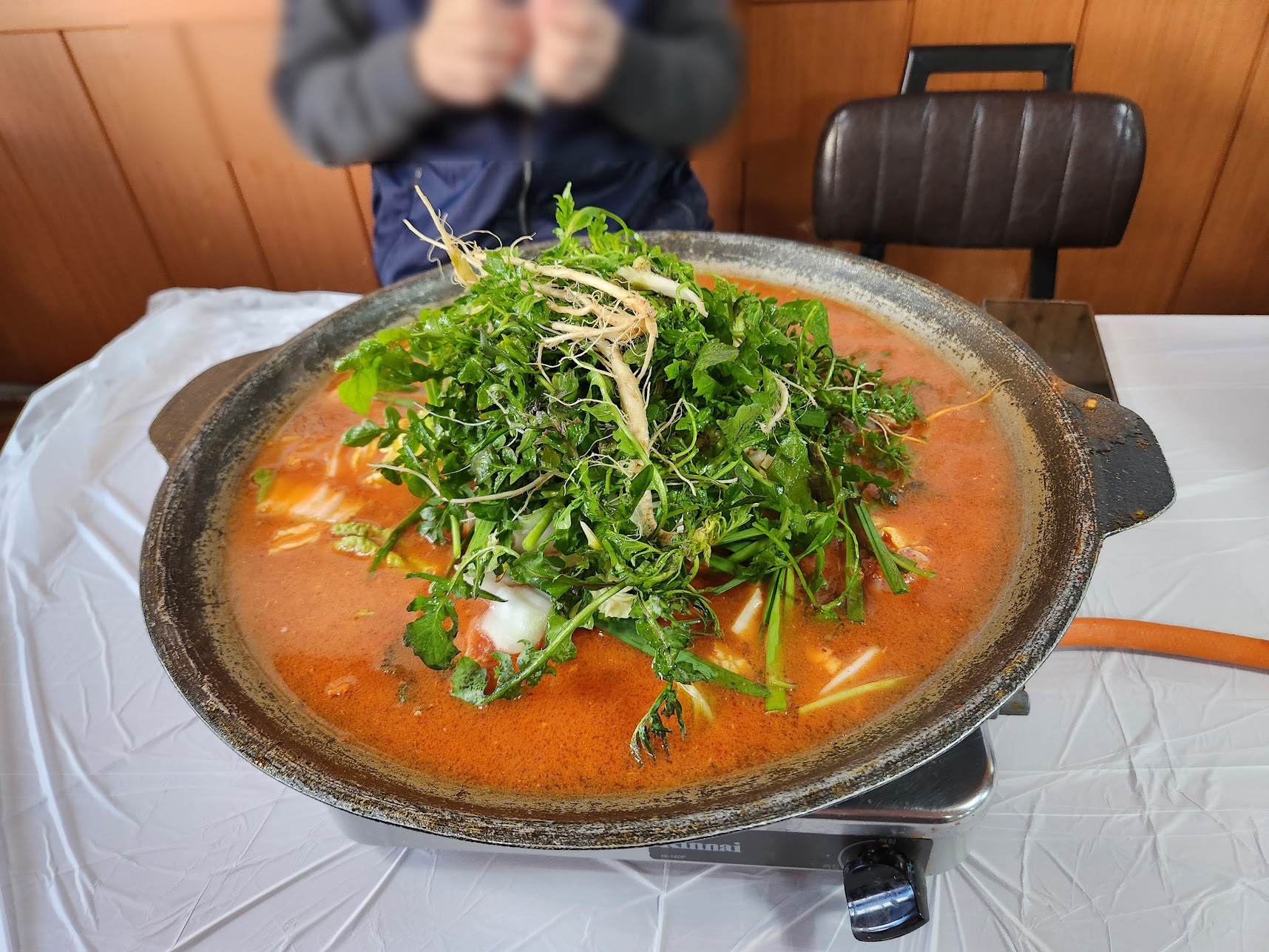 닭갈비에 대한 역사는 이쯤에서 적고... 오프닝에서 적었듯이 춘천식 닭갈비는 여름에도, 겨울에도 기본적으로 메뉴는 동일하지만 태백식 닭갈비는 동계와 나머지 3계절의 구성이 다릅니다. 바로 야채가 다른데, 겨울 한정으로 야채가 냉이로 바뀝니다. 나머지 계절에는 깻잎이 들어가는데, 냉이가 정말 겨울 한 철 야채이기 때문입니다. 그래서 캠핑을 안 가는 계절임에도 태백에 한 번 들려야 하는 이유가 있는 것입니다.