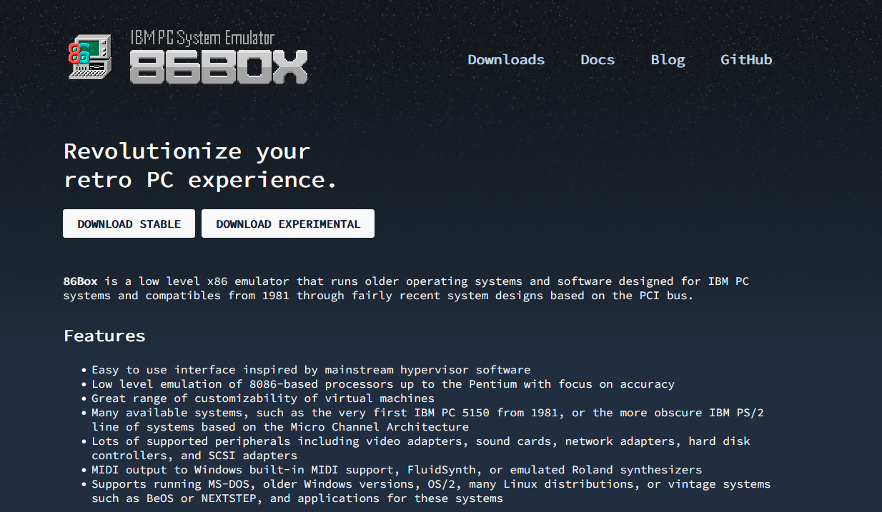 86Box는 PCem이라는 소프트웨어를 포크(오픈소스 프로젝트를 분리하여 별도 프로젝트로 만든 것)하여 만든 'IBM 호환 PC의 에뮬레이터'입니다. 그런데 여기서 문제. 이게 무슨 ARM 아키텍처 CPU를 쓰는 macOS나 안드로이드/iOS면 몰라도 지금 우리가 쓰는 PC의 거의 대부분은 'IBM 호환 PC'인데 왜 이걸 에뮬레이션하냐구요? 그 전에 에뮬레이터가 뭐냐는 질문이 나올법 합니다.