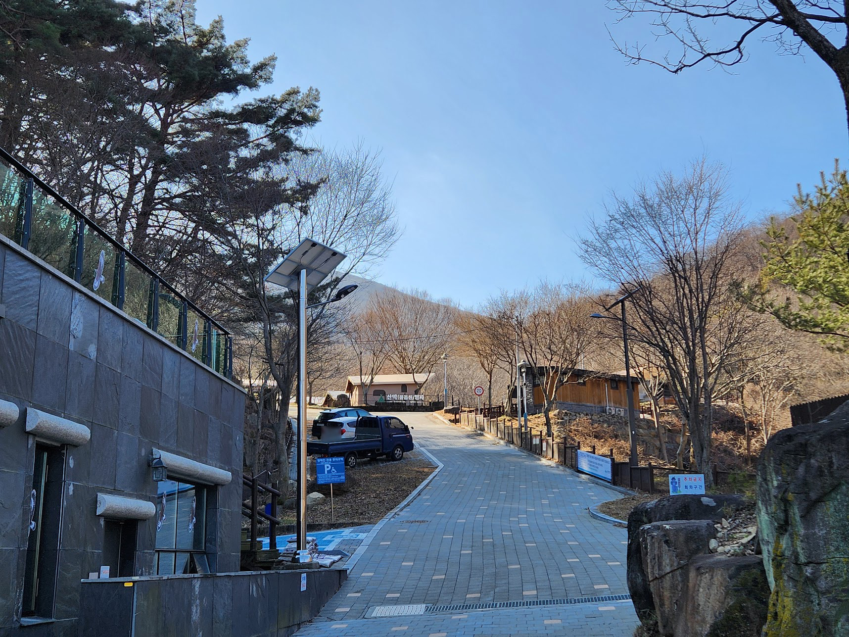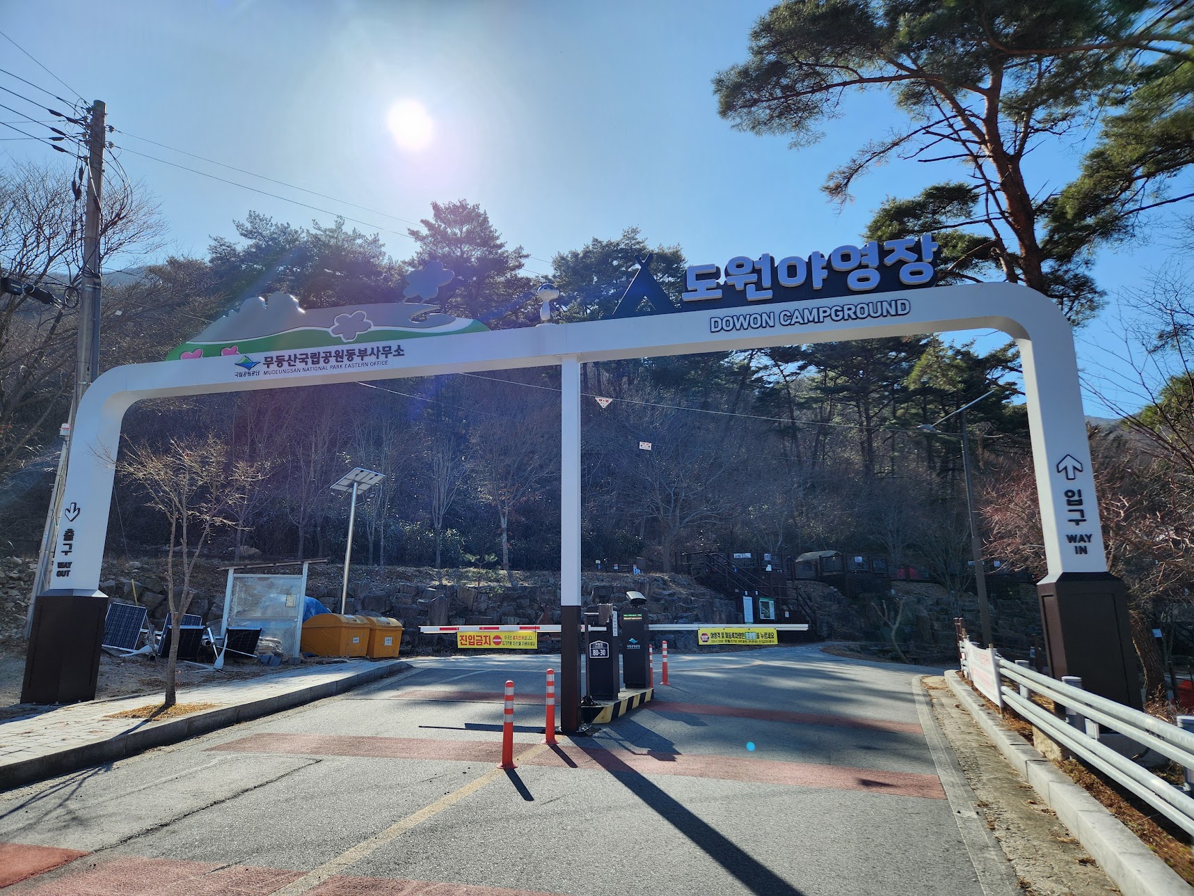 심각한 지정체는 그리 없었다고는 해도 장시간 운전은 피곤합니다. 그렇게 도착한 캠핑장. 차단기 앞에서 벨을 누릅니다. 이 캠핑장의 체크인은 비대면으로 이뤄지기에 신분증 확인도 안 합니다. 그냥 예약자명과 예약 사이트만 확인한 뒤 문을 열어줍니다. 그 다음 자기 자리를 찾아서 가면 됩니다. 물론 관리사무소를 한 번은 갈 일이 생깁니다.