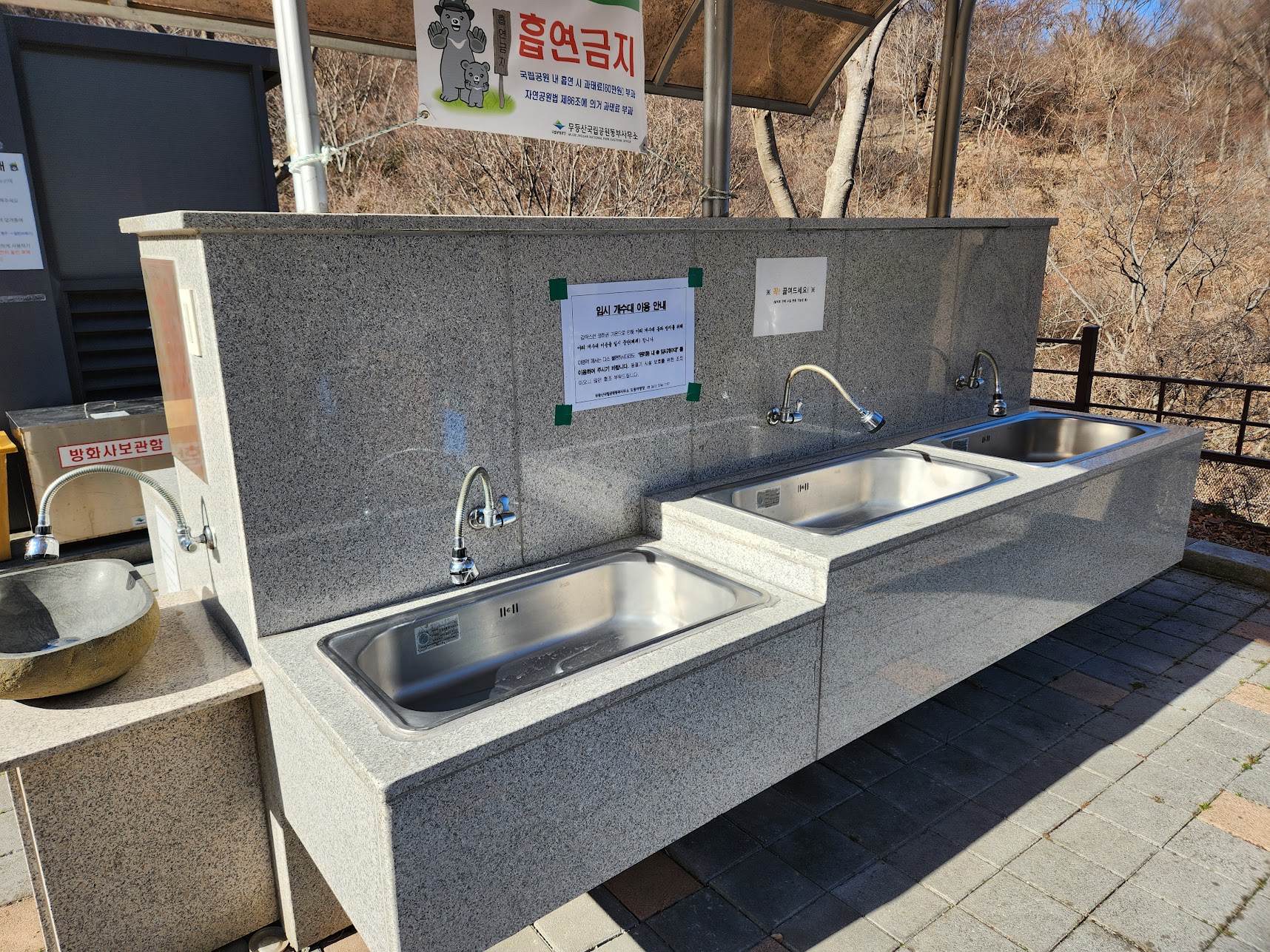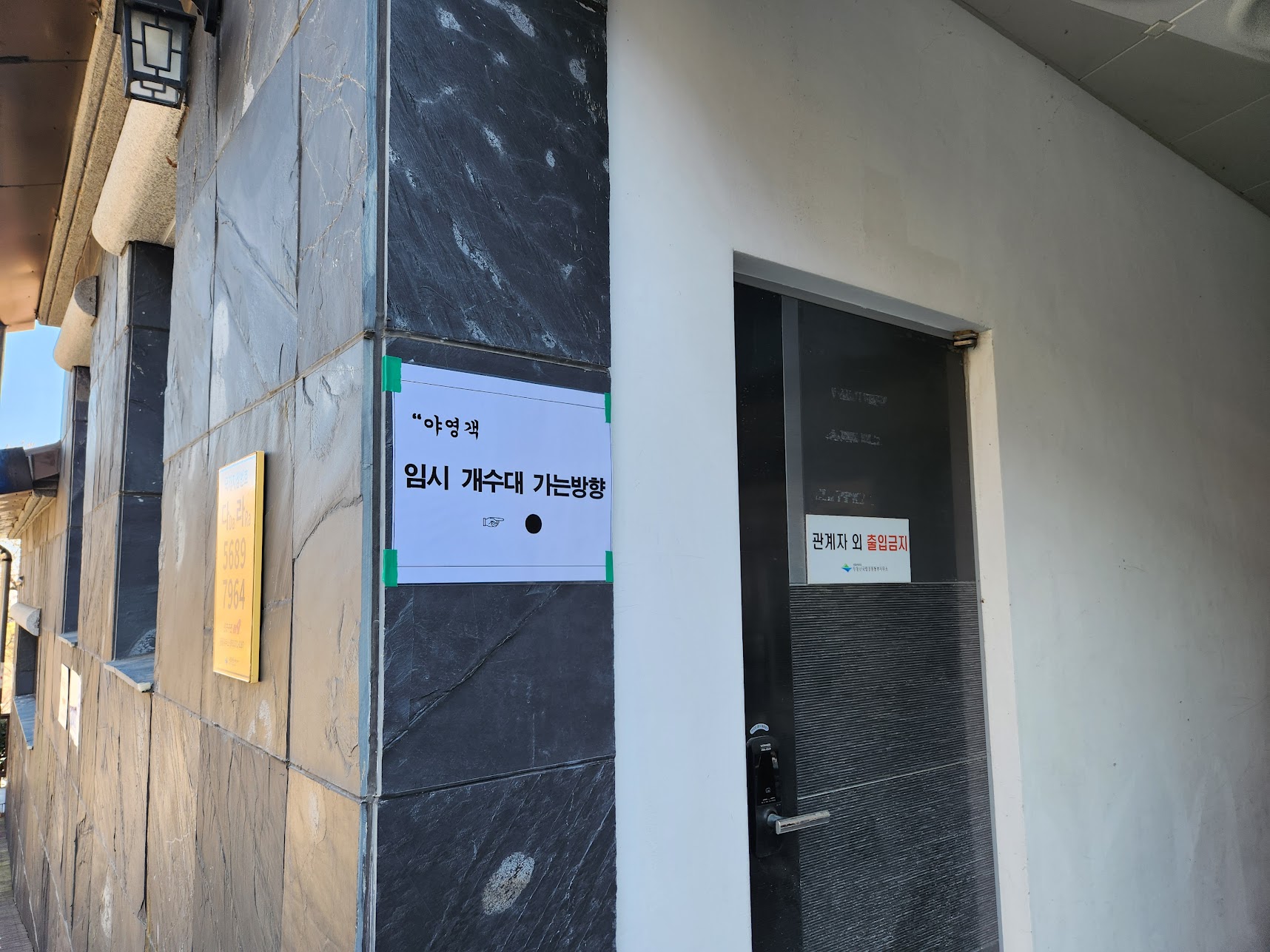 BUT 그러나... 여기에는 비밀의 공간(?)도 하나 있는데 그 비밀의 공간이 잠시 열렸습니다. 이 날 모든 영지의 개수대에는 위와 같은 공지가 붙었습니다. 원래는 옥외 개수대를 쓸 수 있지만 주말에 갑자기 추워지면서 물을 잠가버린 것입니다. 대신 직원 전용으로 사용하는 개수대를 임시로 열어 놓았는데, 여기서는 따뜻한 물도 나옵니다. 원래 이 캠핑장은 온수는 화장실과 개수대 모두 '그런 거 없다'를 외치지만 지난 주말 한정으로 개수대 온수는 쓸 수 있었습니다. 그러나 이것이 다음날 나름 참사(?)를 불렀습니다만.T_T