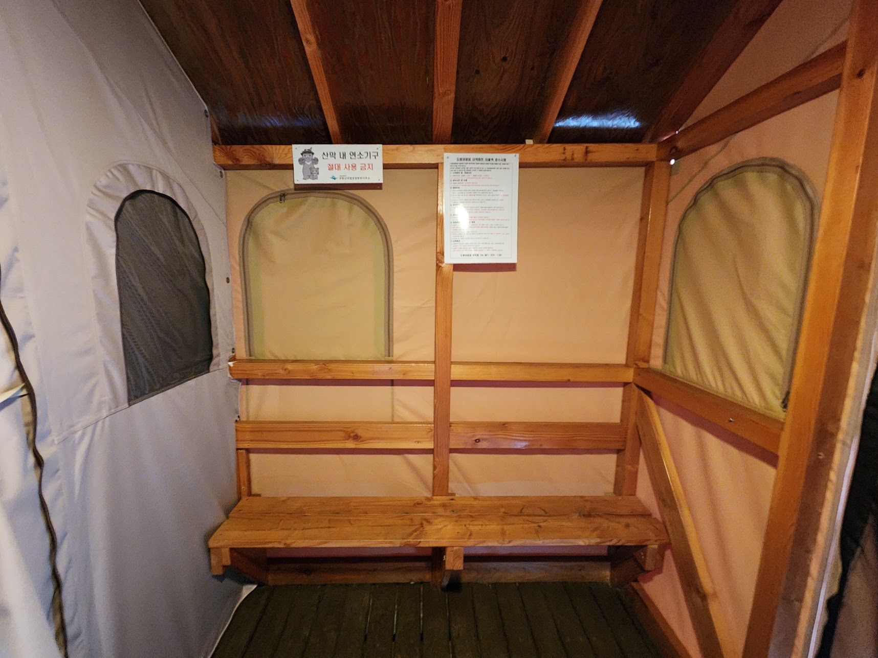 이번에도 산 위에 있는 산막텐트로 예약을 잡았습니다. 이 산막텐트는 겨울에는 운영을 하지 않고 3월부터 다시 예약을 받습니다. 아래쪽 일반 영지는 동계에도 운영하지만, 산막텐트는 사실상 이번주가 오프닝주라 할 수 있습니다.