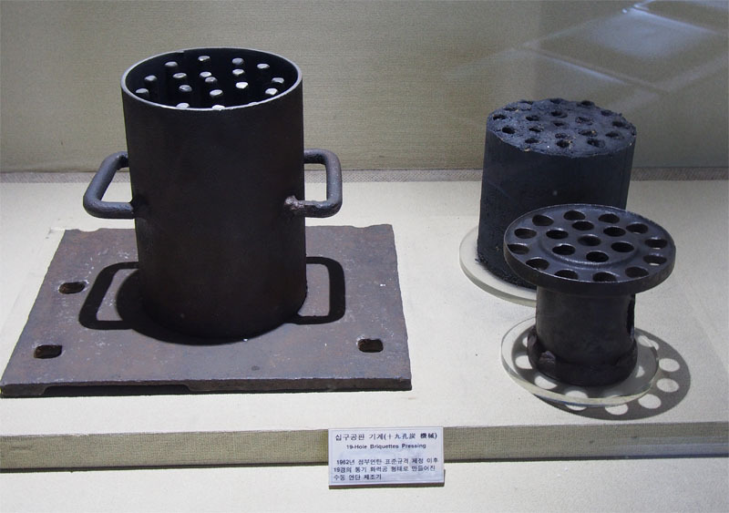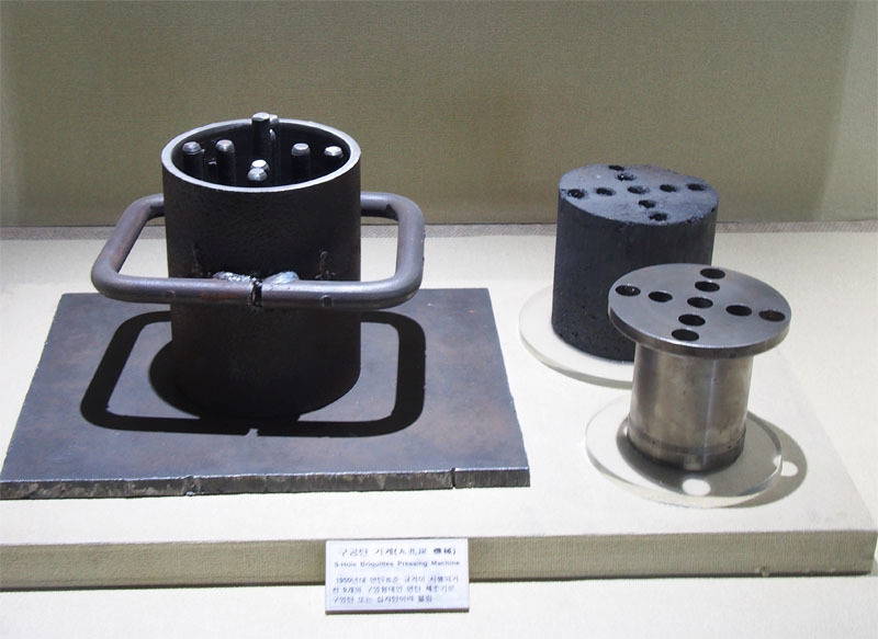 이건 저도 써볼 일은 없었습니다. 주먹탄이라고 탄광 주변에서 후딱 만들어 쓰는 물건인데, 가루 석탄에 물을 넣어 반죽하고 여기에 눌러 담은 뒤 찍어내면 조개탄 비슷한 물건이 완성!